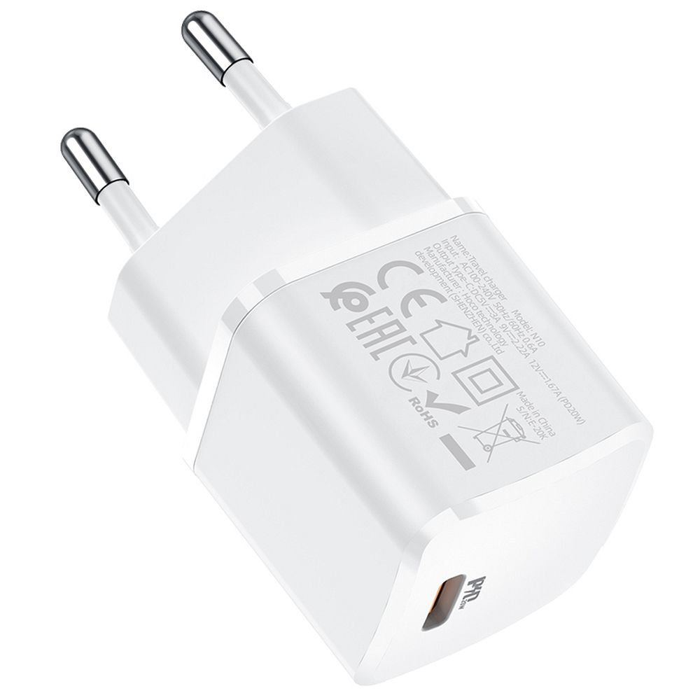 Ładowarka sieciowa z wejściem USB-C i obsługą szybkiego ładowania PD 20W.