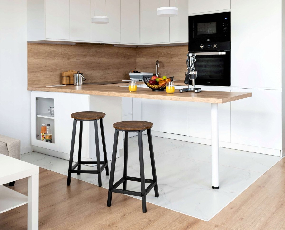 Możliwość wsunięcia taboretów pod blat sprawia, że nie zajmują one dużo miejsca. Docenią to wszyscy właściciele małych pomieszczeń. Model idealnie komponuje się z innymi meblami z tej kolekcji. Sprawdź ich dostępność na pozostałych ofertach.
