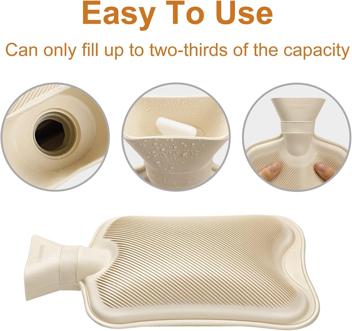 Duża pojemność – termofor o wymiarach 32 x 21 cm ma pojemność 2 litrów. Termofor wyjątkowo długo oddaje ciepło. Uwaga: ze względów bezpieczeństwa nie należy używać wrzącej wody. Nie należy napełniać zbyt dużą ilością wody, lecz tylko do poziomu ok. 3/4.