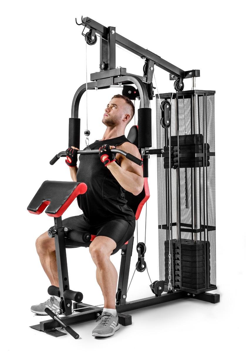 Atlas jednostanowiskowy do doskonałe rozwiązanie, jeśli dysponujesz niewielkim pomieszczeniem do ćwiczeń. Waga stosu to 66 kg.