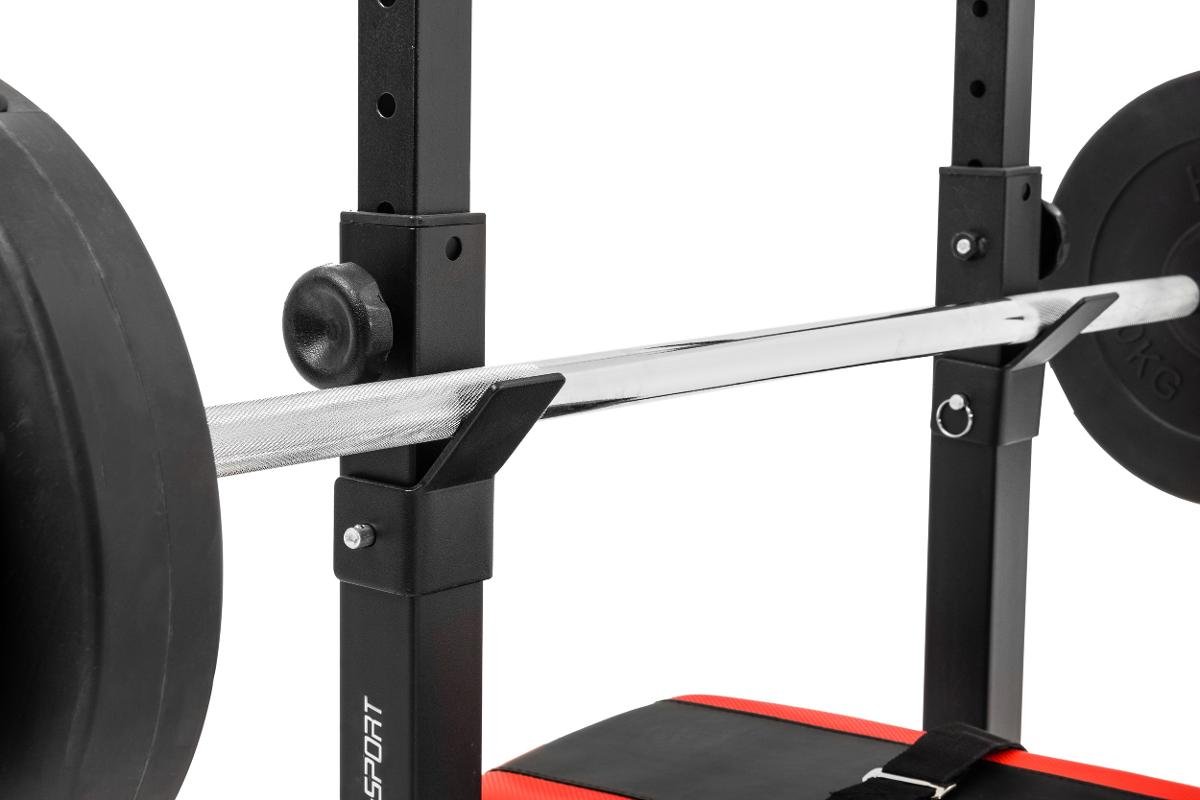 W tej ławce możesz ustawić wysokości stojaków na sztangę, pozwala to na dopasowanie ławki treningowej do indywidualnych potrzeb. Regulacja wysokości stojaków jest możliwa w 5 stopniach. Stojaki wyposażone zostały w asekurację , co zwiększa bezpieczeństwo w trakcie treningu.