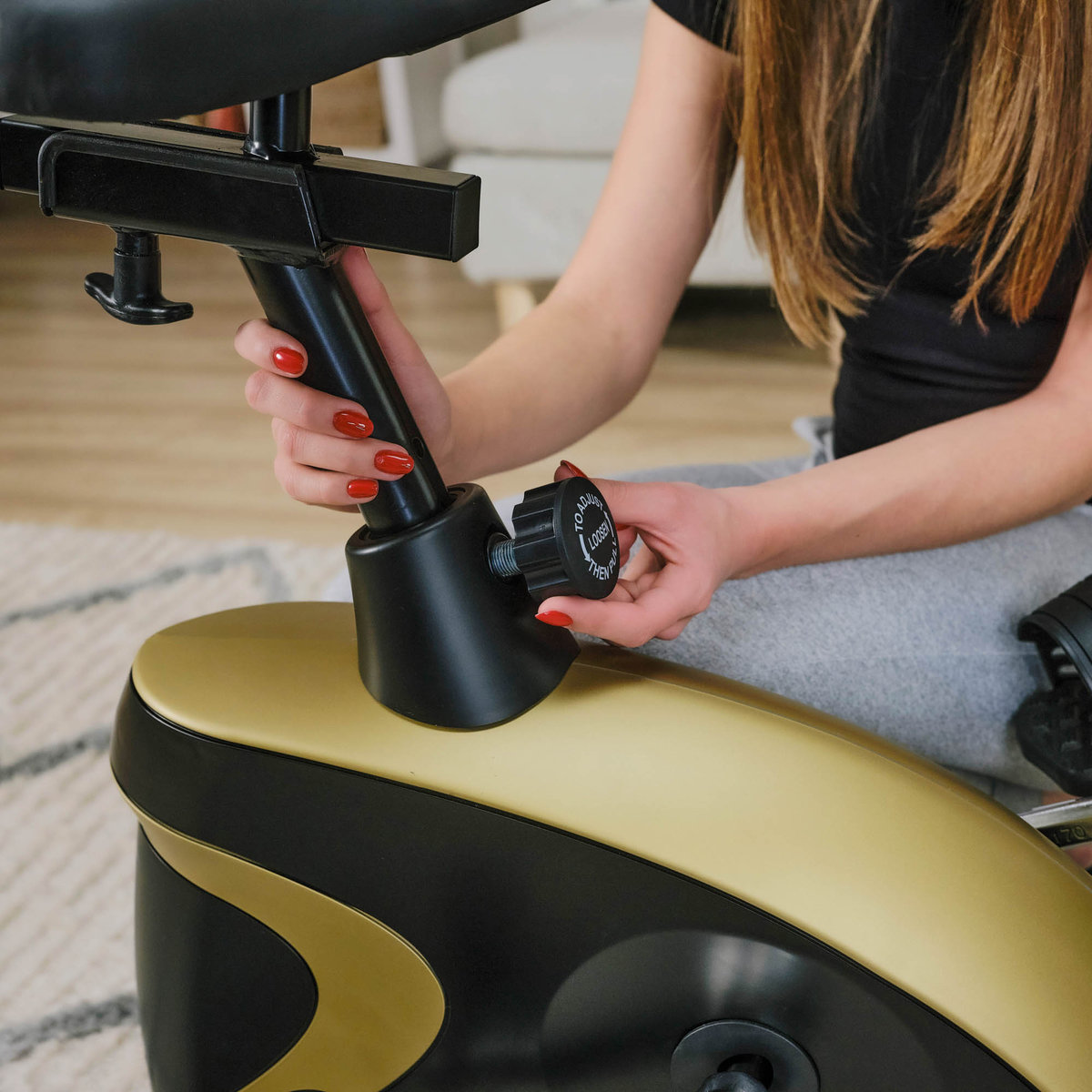 Komfort podczas ćwiczeń to podstawa! Dzięki możliwości precyzyjnej regulacji siedziska w pionie i poziomie, z łatwością dopasujesz je do swojego wzrostu oraz indywidualnych preferencji. Ergonomiczny kształt siedziska i żelowe wypełnienie sprawią, że nawet dłuższy trening na rowerze będzie przyjemny i wygodny
