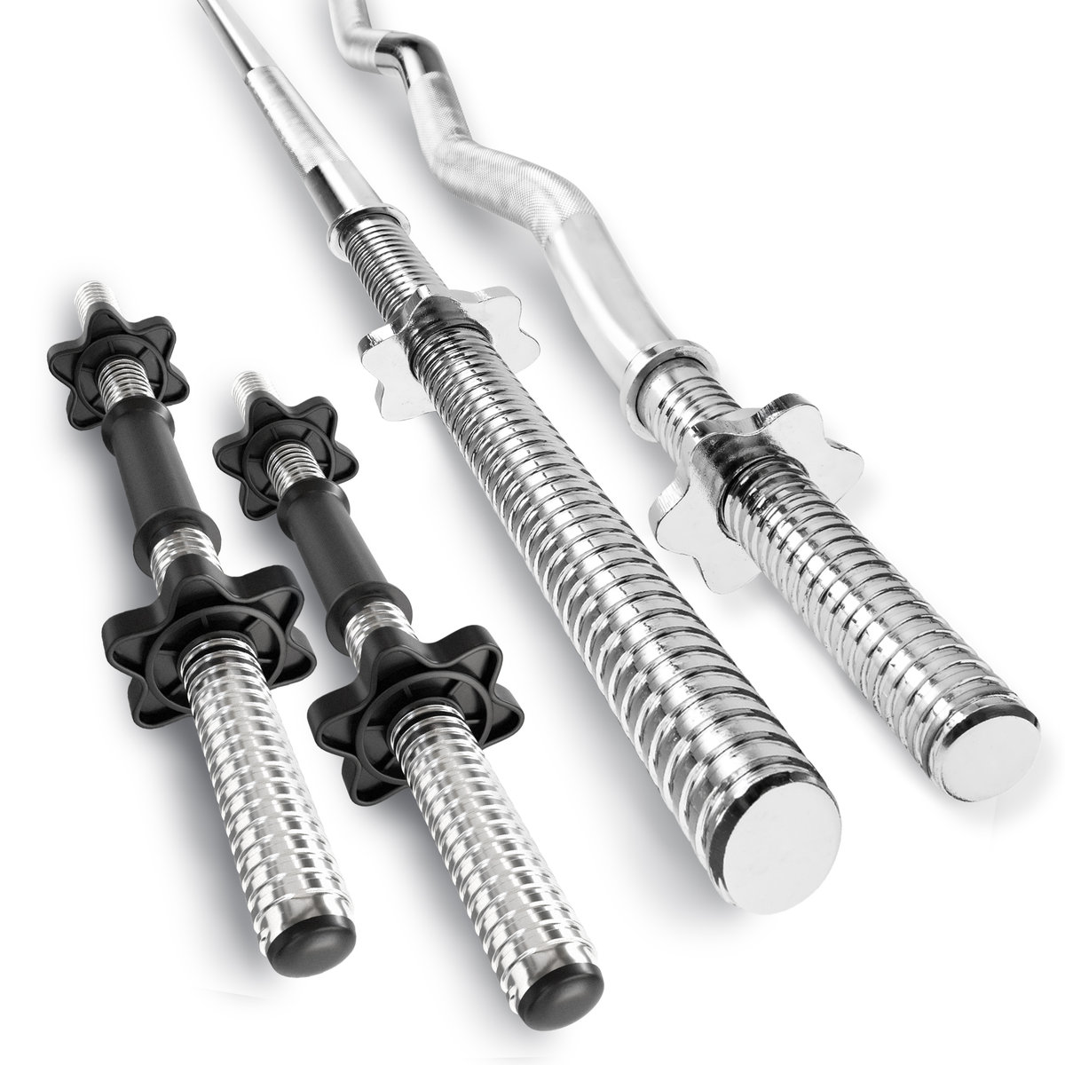 - dwa krótkie proste gryfy do hantli - o szerokim zastosowaniu m.in. do ćwiczeń na biceps, triceps, przedramię, barki, plecy i klatkę piersiową.