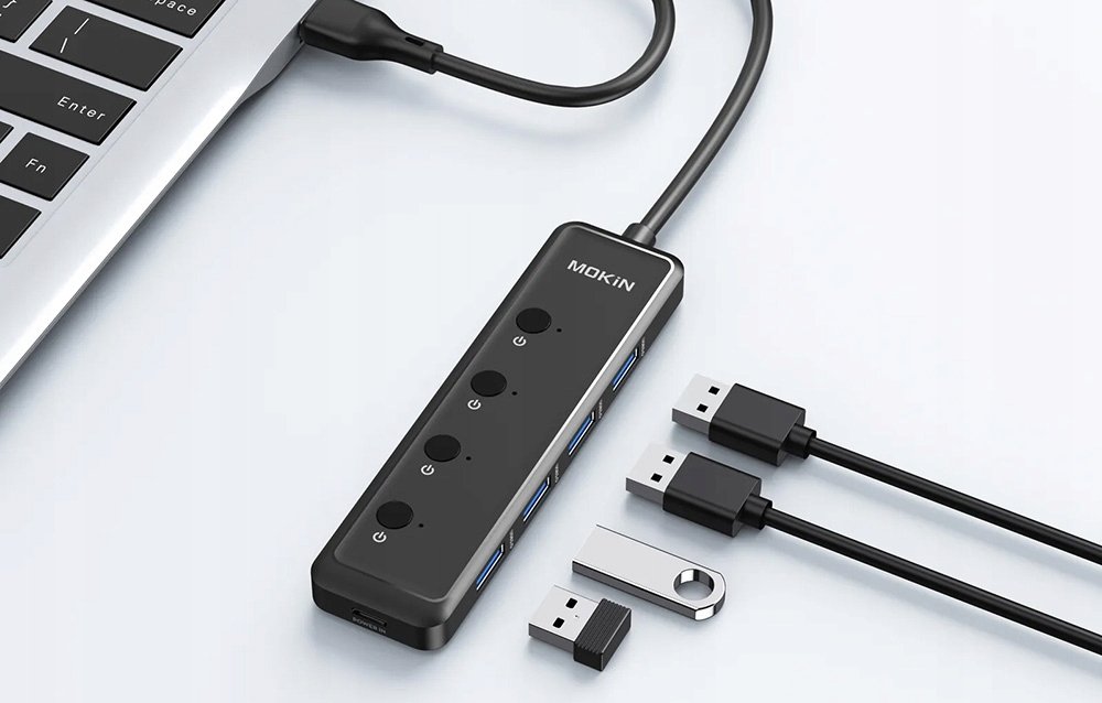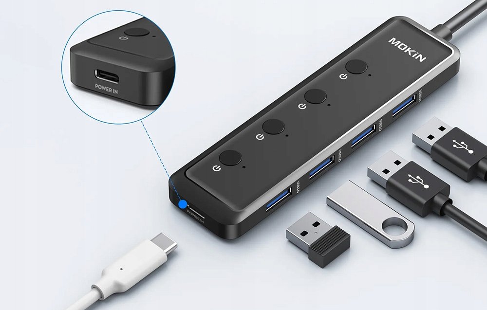 | Nazwa: | HUB 5 w 1 MOKiN USB-A3.0 do 4xUSB-A + 1xUSB-C DC (czarny) |