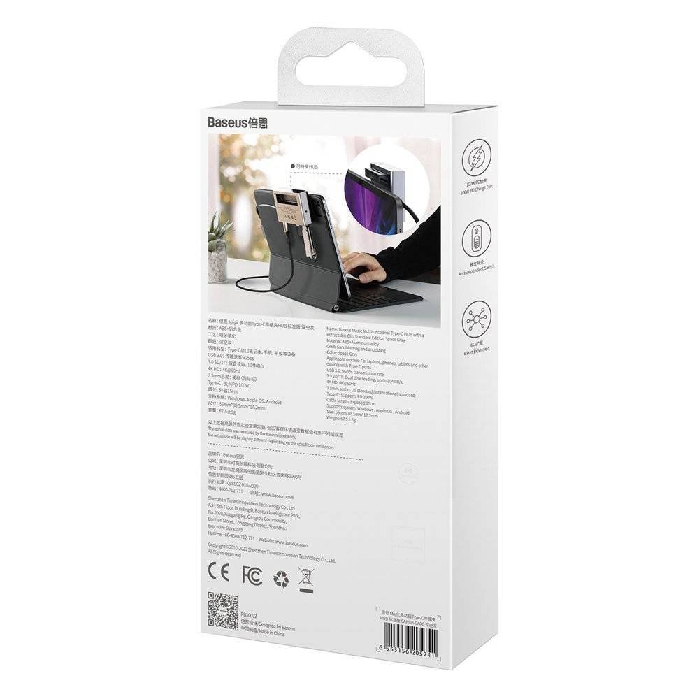 | Nazwa: | Hub 6w1 Baseus Magic, USB-C do USB 3.0 + HDMI + USB-C PD + Jack 3.5mm + microSD/SD z klipsem na ekran |