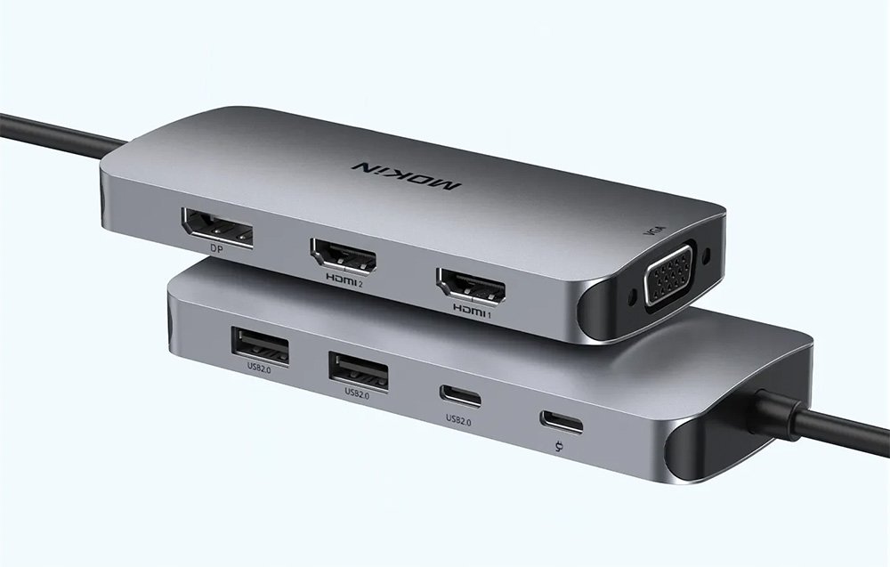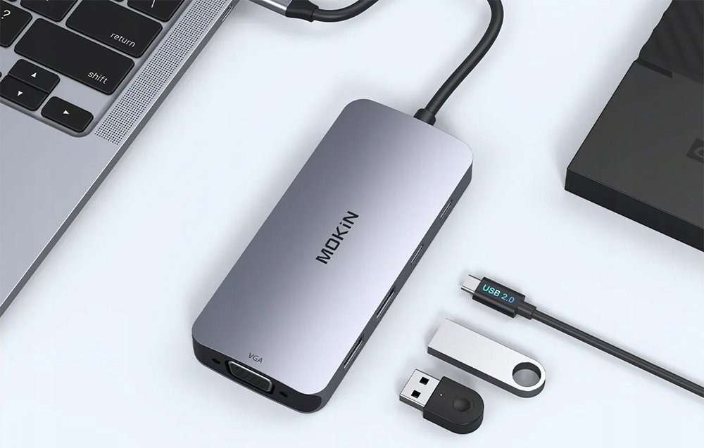 HUB 8 w 1 MOKiN USB-C VGA+2xHDMI (srebrny)