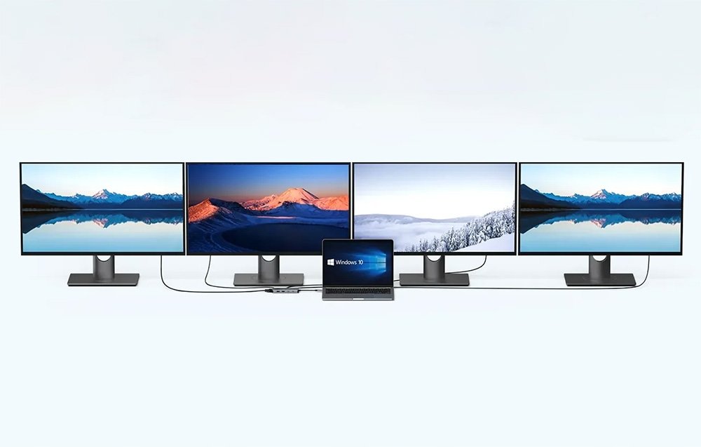 Dzięki dostępnym portom HDMI, DP i VGA możesz podłączyć do swojego laptopa od jednego do nawet czterech dodatkowych monitorów. Takie rozwiązanie idealnie sprawdzi się w pracy, podczas grania w gry, obrabiania zdjęć, montażu wideo i nie tylko! Uwaga: hub jest kompatybilny z laptopami wyposażonymi w porty Thunderbolt lub USB-C z pełnym wsparciem dla wszystkich funkcji (transfer danych, wyświetlanie obrazu, ładowanie).