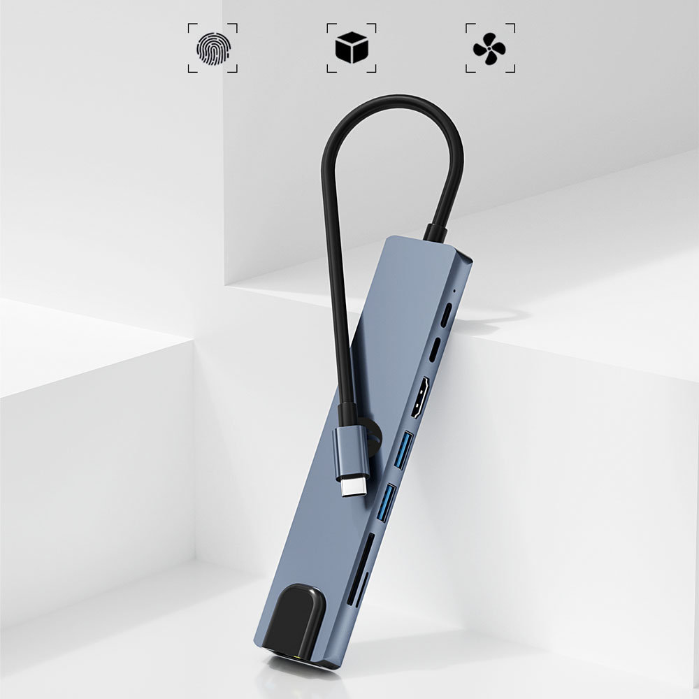 Aluminiowa obudowa – Styl i funkcjonalność Hub 8w1 został zaprojektowany z myślą o trwałości i estetyce. Aluminiowa obudowa nie tylko zapewnia wytrzymałość, ale także doskonałe odprowadzanie ciepła, co gwarantuje stabilną pracę nawet podczas długiego użytkowania. Obudowa jest odporna na odciski palców, co sprawia, że urządzenie zawsze wygląda elegancko i nowocześnie. To doskonałe połączenie stylu i funkcjonalności, idealne do każdego profesjonalnego środowiska pracy.