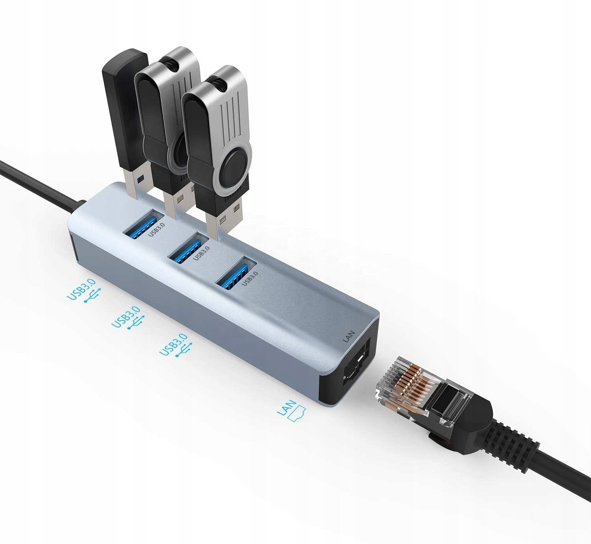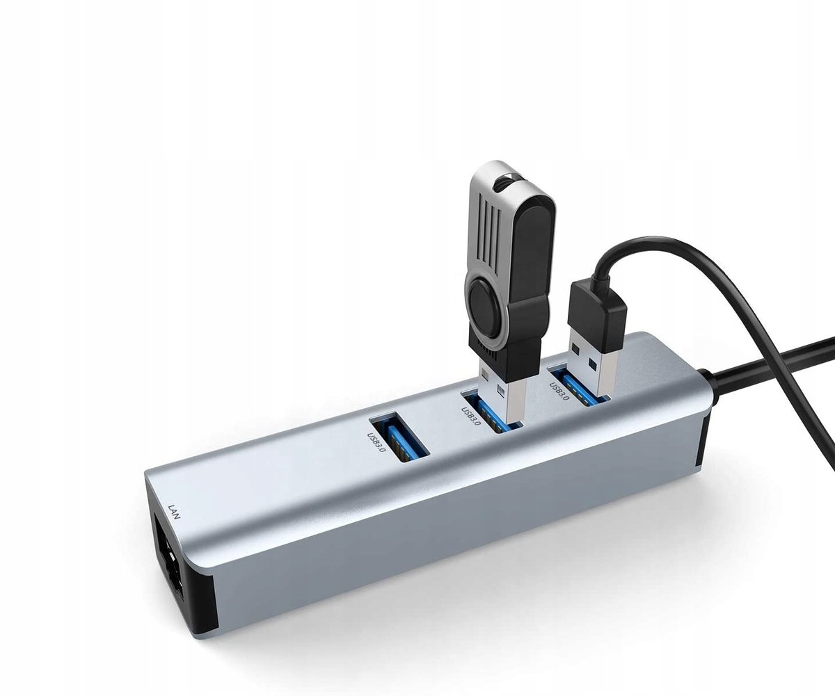 HUB ADAPTER USB-C LAN ETHERNET RJ45 GIGABIT 1000 Mbps✔️3 Porty USB 3.0 wspierają przepustowość do 5 Gbps✔️Możliwość podłączenia klawiatury, myszki, drukarki✔️Działa ze wszystkimi laptopami oraz komputerami z gniazdem USB-C✔️Kompatybilny z Windows 11/10/8.1/8/7/XP/Vista, Linux, Mac OS✔️Niewielki rozmiar i estetyczny wygląd zapewniają wysoką kulturę pracy Specyfikacja: Szybkość transmisji: do 1000Mbps Wtyk USB-CGniazda USB - 3x USB 3.0Gniazdo LAN RJ45Plug&Play - działa bez dodatkowych sterownikówWysokiej jakości aluminiumDługość przewodu ok 15cm ✔️Adapter Ethernet Karta Sieciowa Gigabit 10/100/1000 Mbps LAN RJ45⭐ Umożliwia przesyłanie danych z prędkością do 1000 Mbps ⭐ Wysokiej jakości materiały gwarantują długą i niezawodną pracę ⭐ Idealne rozwiązanie dla laptopów bez gniazda LAN ✔️Nie wymaga dodatkowego zasilania⭐ Działa z urządzeniami wyposażonymi w port USB-C ⭐ Działa z Windows 11/ 10 / 8.1 / 8 / 7 / Vista / XP, Mac OSX 10.6-10.12