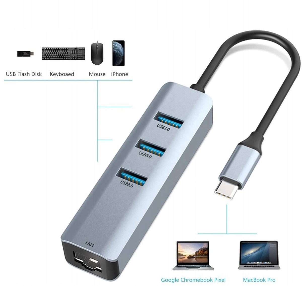 HUB ADAPTER USB-C LAN ETHERNET RJ45 GIGABIT 1000 Mbps