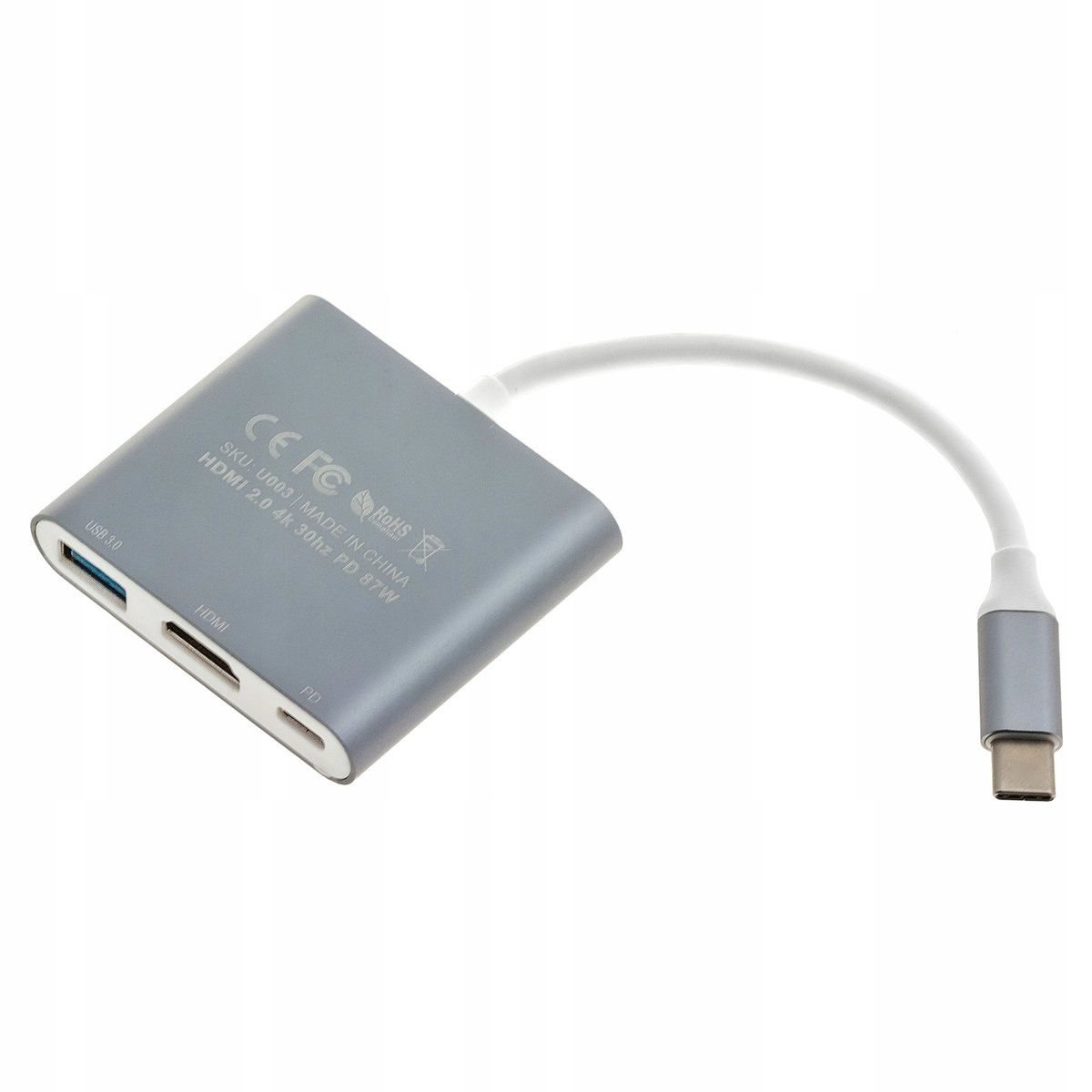 KONWERTER ADAPTER HUB USB-C 3w1 HDMI 4KObudowa huba jest wykonana z aluminium, co zapewnia mu trwałość oraz łatwe odprowadzanie ciepła podczas pracy. Adapter hub USB-C pozwala zwiększyć ...