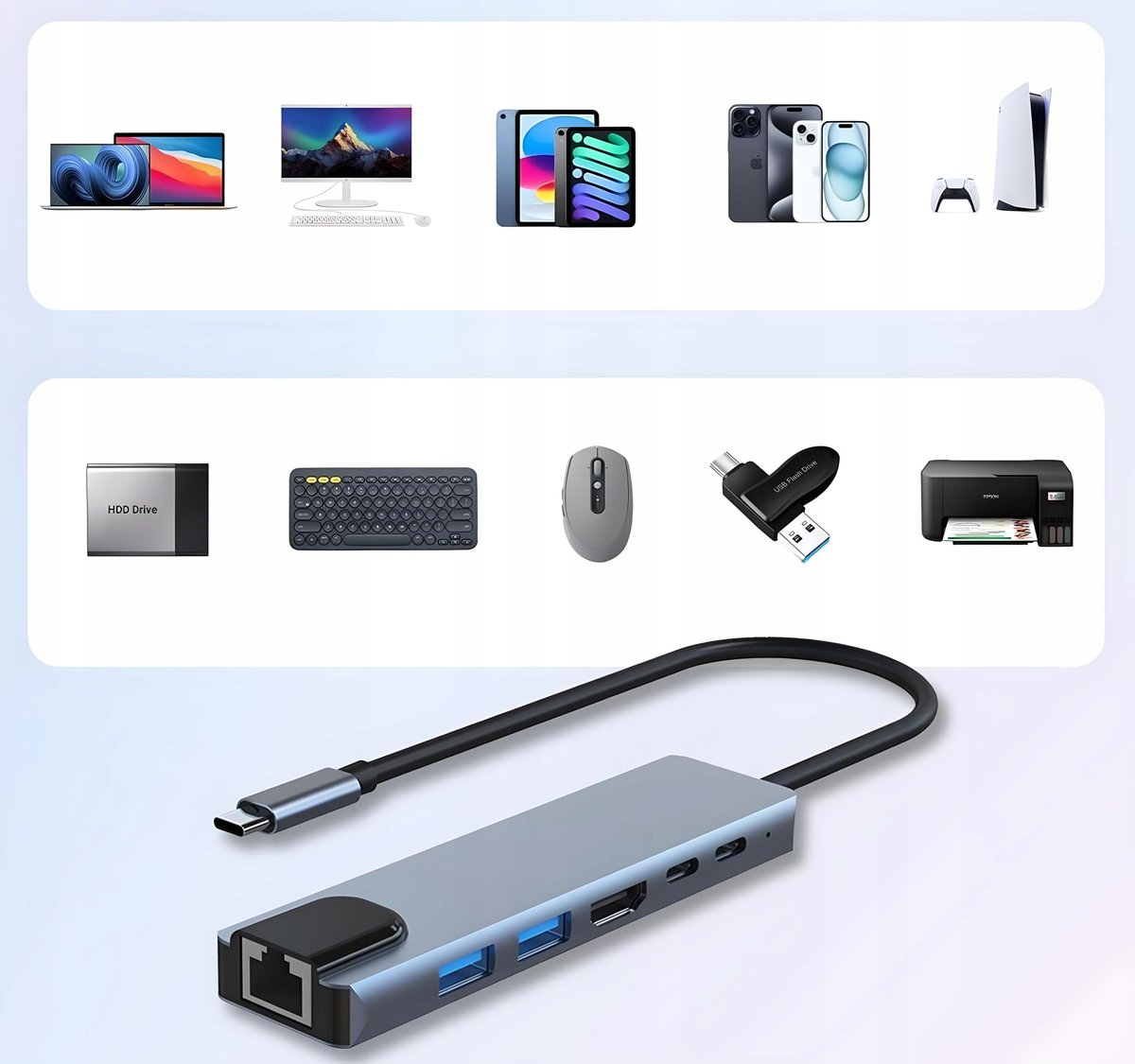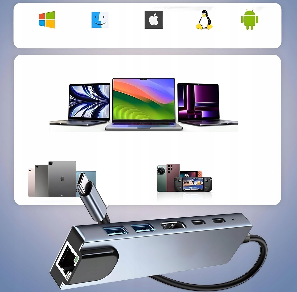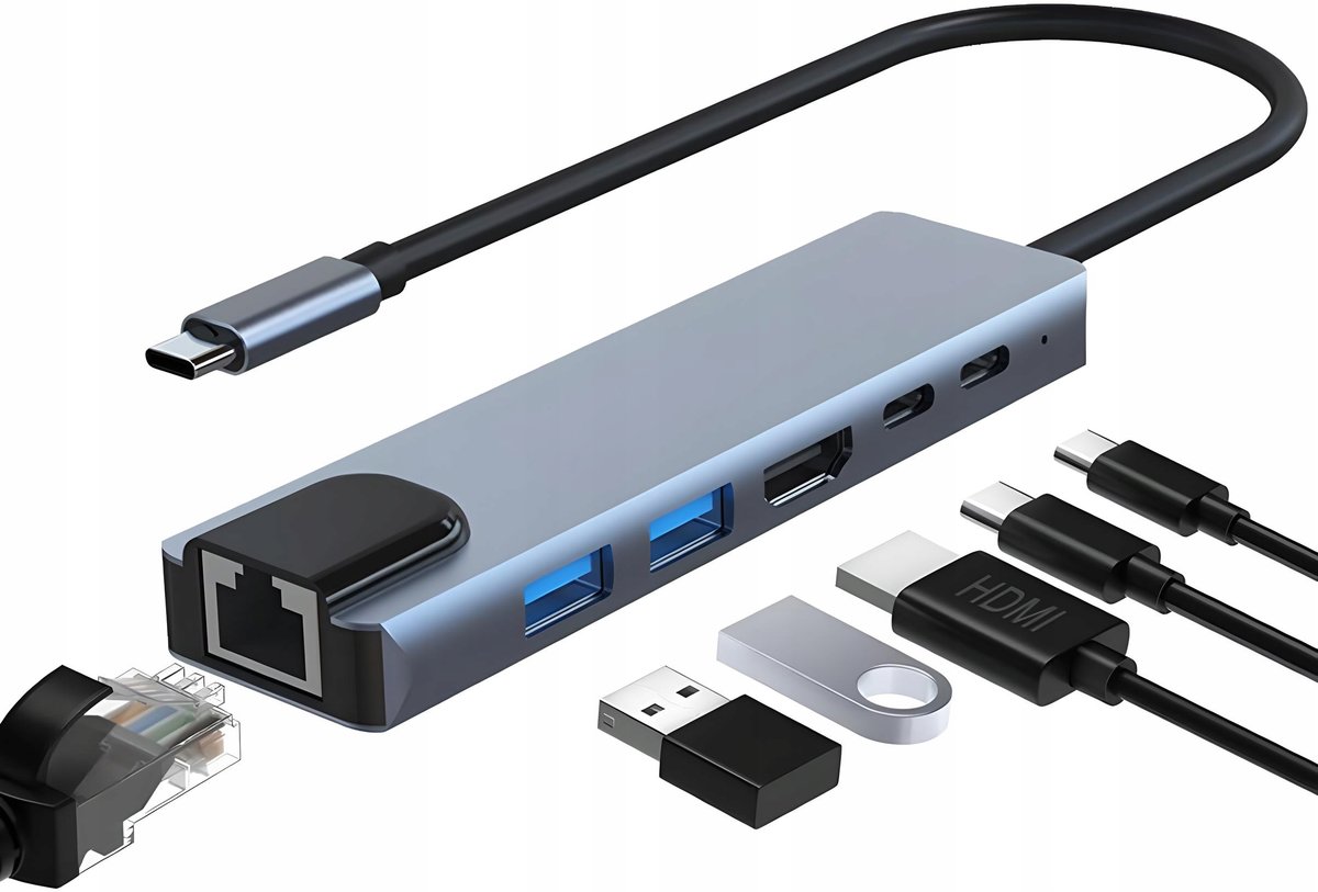 Właśnie zrecenzowałem HUB USB-C 6w1 HDMI 4K RJ45 LAN 2xUSB 3.0 PD 100W MacBook M1 M2 Thunderbolt