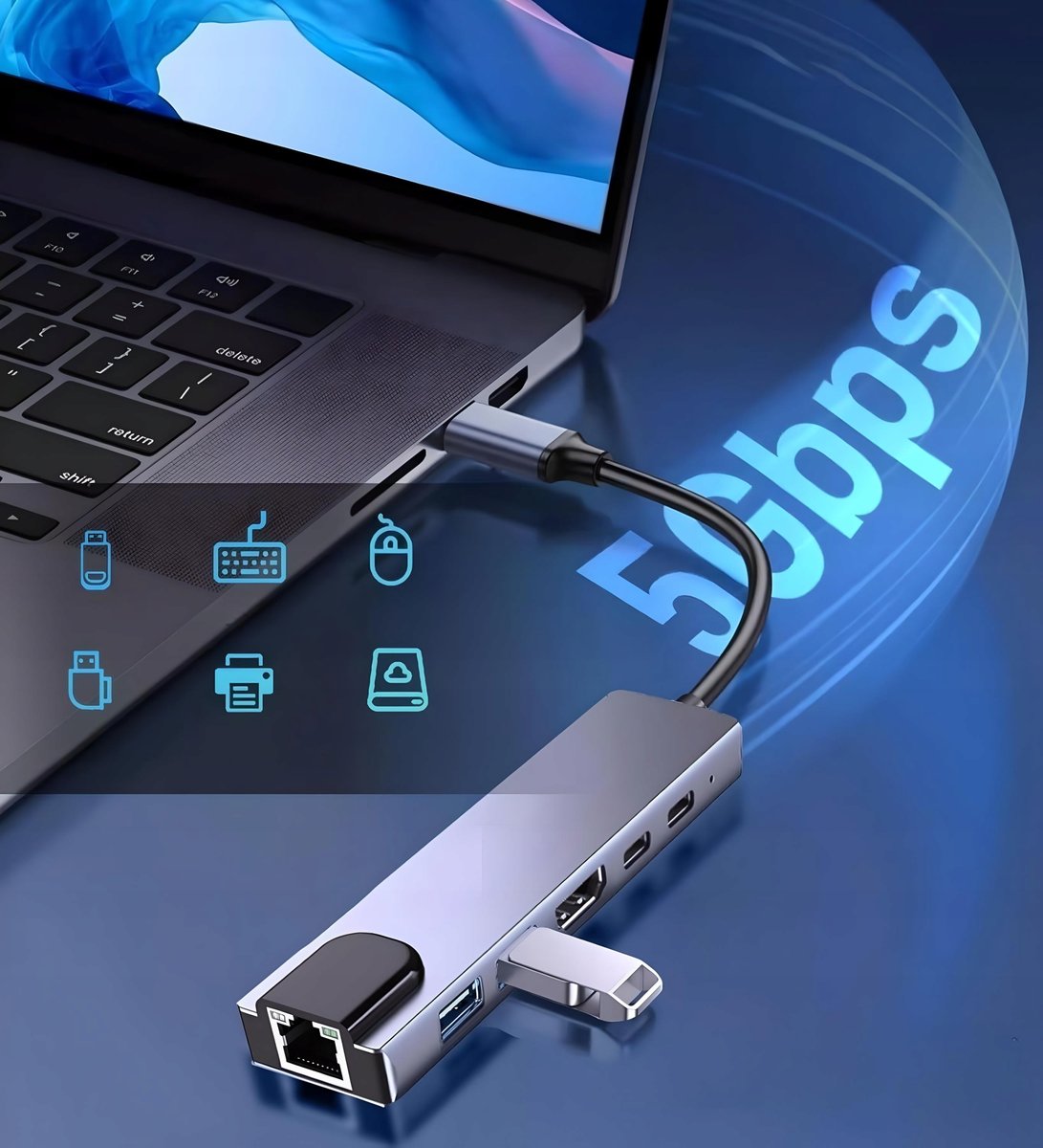HDMI 4K • RJ45 Ethernet • 2x USB 3.0 • 2x USB-C • Plug & Play