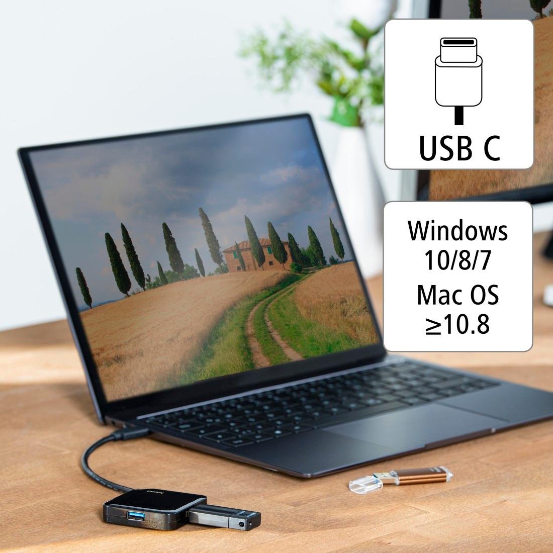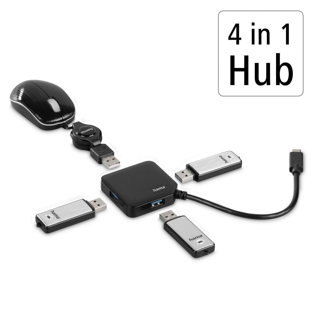 Hama Kompaktowy hub USB typ C 4x USB-A, czarny Do podłączenia komputera PC, notebooka, MacBooka, tabletu z ...