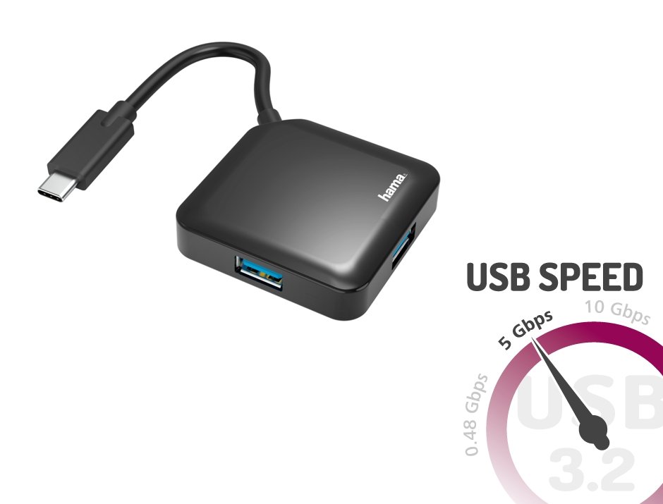 Hama Kompaktowy hub USB-C 4x USB-A 3.1 GEN1, czarny