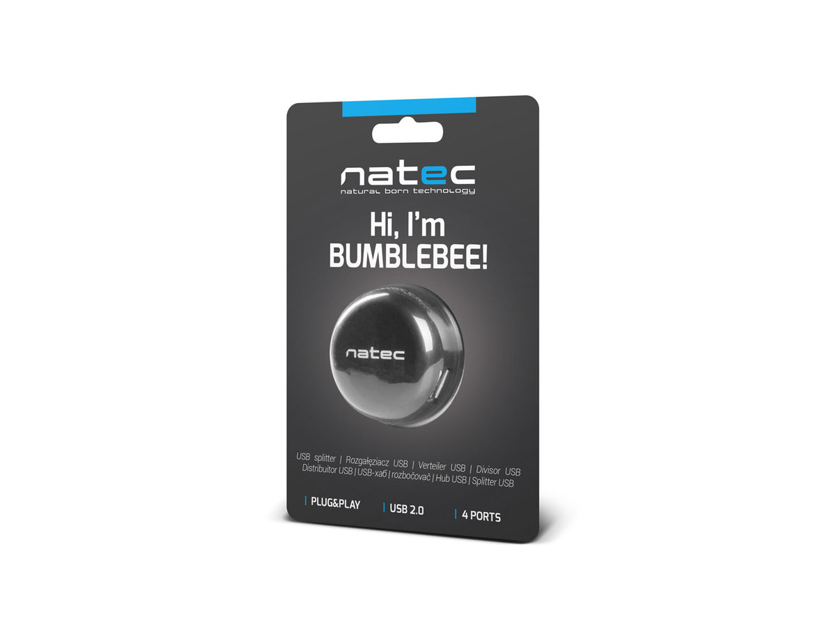 Hub USB Natec Bumblebee posiada aż 4 wejścia USB. Teraz wszystkie nasze urządzenia możemy podłączyć do jednego HUB’a, dzięki czemu oszczędzamy wejścia w komputerze oraz mamy swobodny dostęp do podłączonych urządzeń.