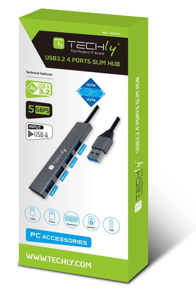 Hub USB Techly 4-portowy USB3.2 Gen1