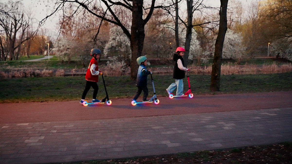 światła LED nie tylko przyciągają wzrok i czynią hulajnogę bardziej stylową, ale również zwiększają bezpieczeństwo dziecka podczas jazdy, szczególnie o zmierzchu lub w warunkach słabego oświetlenia. Światła LED działają jak dodatkowe oznaczenie hulajnogi, dzięki czemu dziecko jest lepiej widoczne dla innych uczestników ruchu, co znacząco zmniejsza ryzyko wypadków