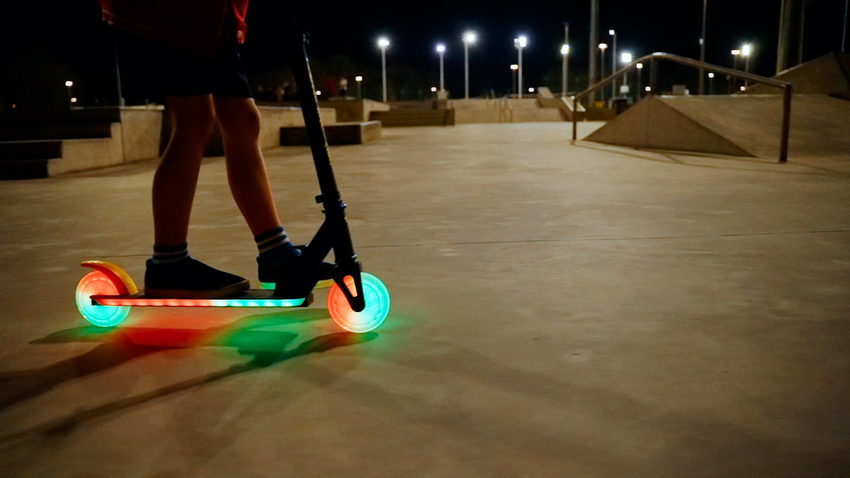 Hulajnoga została wyposażona w nowoczesny system sterowania oświetleniem LED, który działa w prosty i intuicyjny sposób. Aby włączyć światła, wystarczy jedno kliknięcie przycisku umieszczonego na kierownicy. Jeśli chcesz je wyłączyć, wystarczy przytrzymać przycisk przez kilka sekund.
