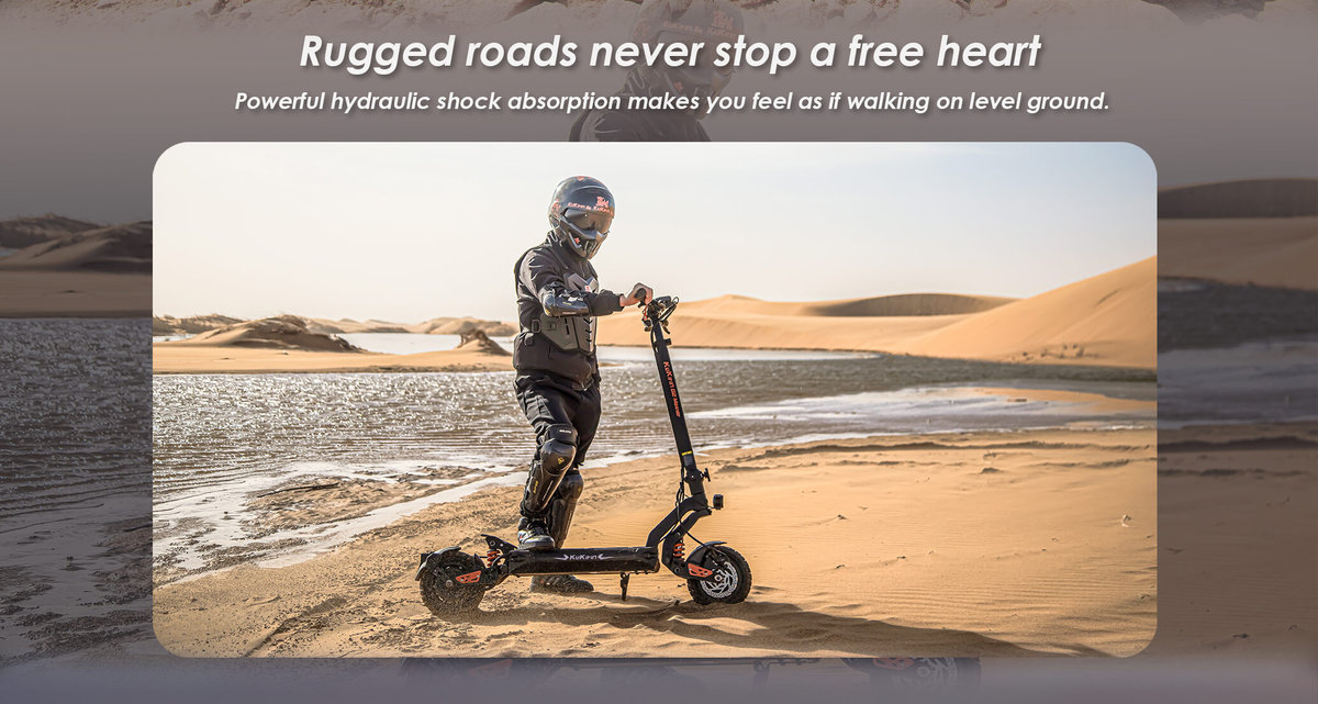 Dwa silniki bezszczotkowe 1000 W (całkowita moc 2000 W) o maksymalnej prędkości ≤60 km/h, z łatwością pokonujące nachylenia 28°.