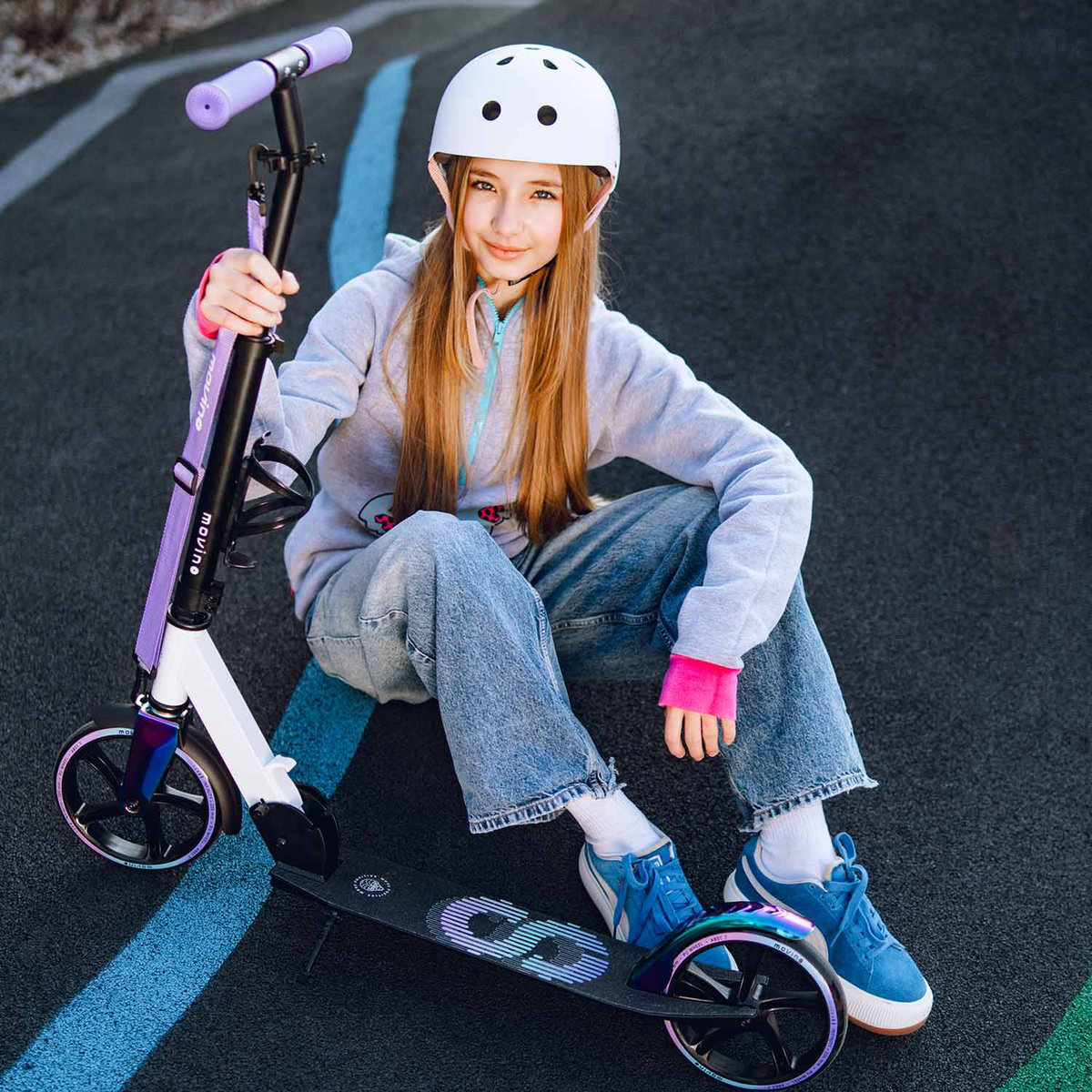 Movino Infinity to wygodna hulajnoga miejska dla dzieci i młodzieży. Sprawdzi się w drodze do szkoły. Posiada nisko zawieszony podest, co z pewnością docenią młodsi użytkownicy. Model Infinity został wyposażony w praktyczne dodatki: pasek do transportu oraz uchwyt na bidon.