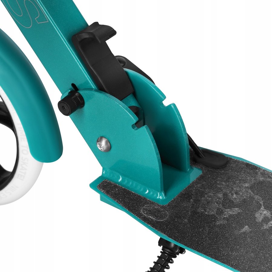 Duże kółka PU o średnicy 200 mm i łożyska ABEC-9 zapewniają płynną, cichą jazdę oraz dobrą amortyzację na nierównościach. Regulowana kierownica (92–102 cm) pozwala dopasować hulajnogę do wzrostu użytkownika, a antypoślizgowy podest z TPR zwiększa bezpieczeństwo podczas jazdy.