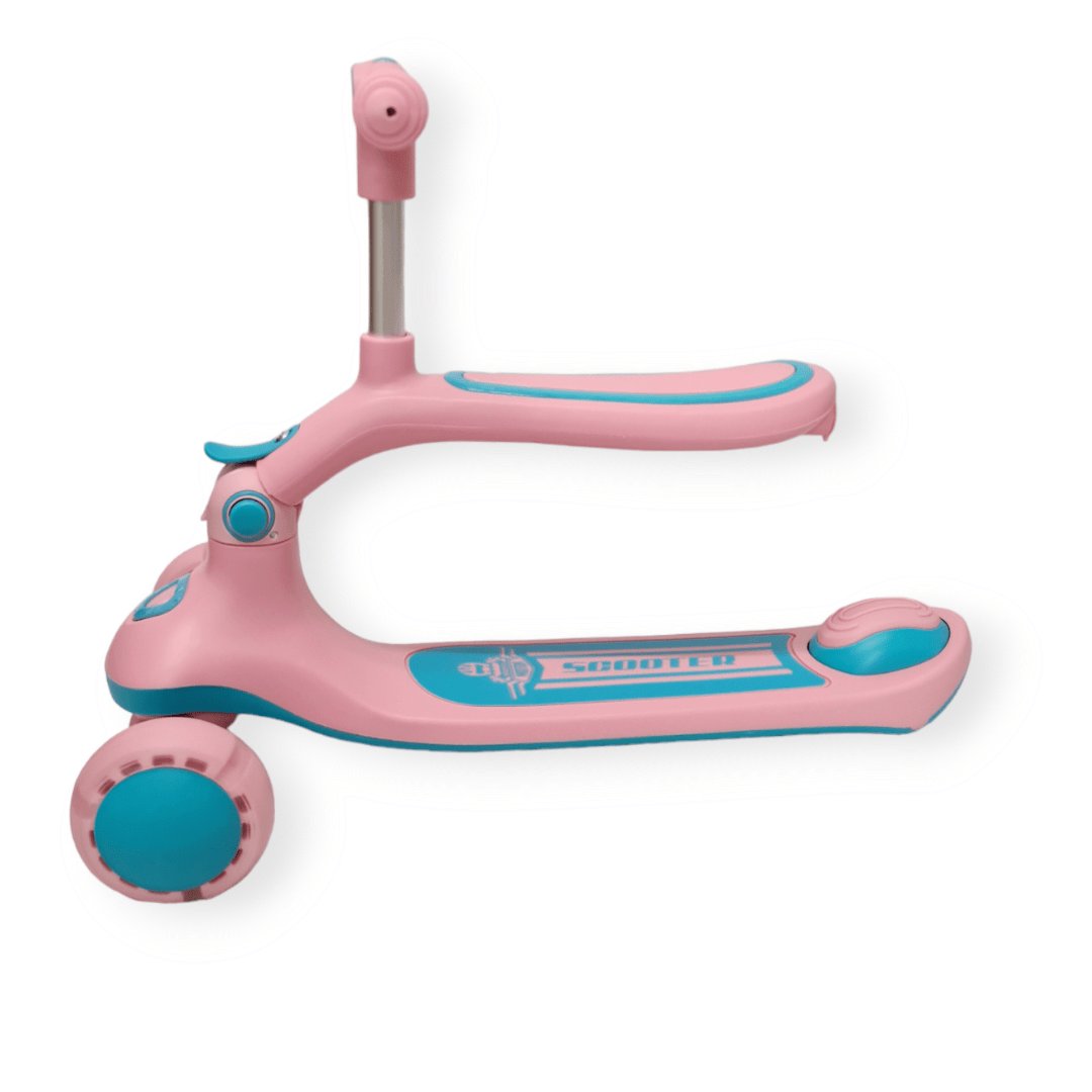 Hulajnoga Trójkołowa Balansowa 3w1 z Prowadzeniem 360° i Oświetleniem LED Koła pomocnicze boczne dodane do pozycji tylnej w funkcji jeździka pozwalają na wygodne obracanie hulajnogą na prawo i lewo ...