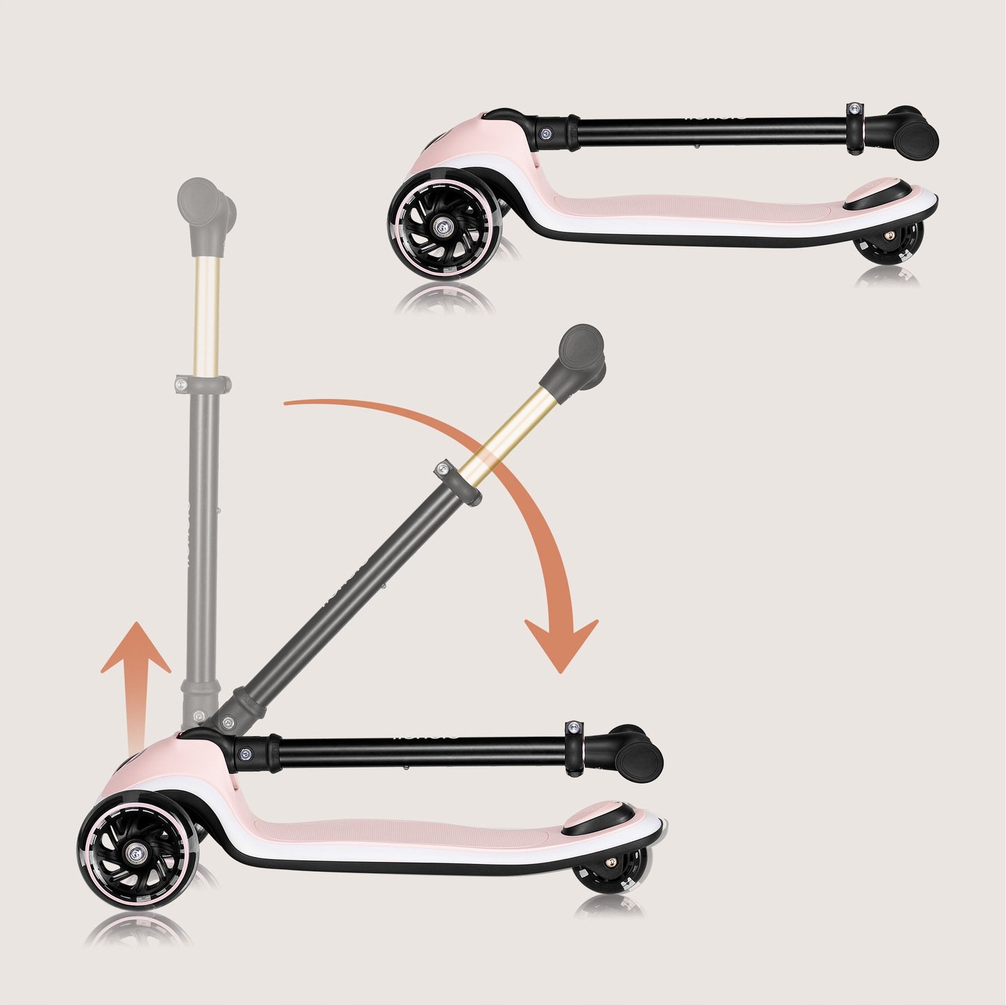 Długie schody do pokonania albo dziecko już zmęczone? Nie ma sprawy! Podnieś bezpiecznik u dołu kierownicy, żeby szybko ją złożyć – posłuży Ci ona za wygodny uchwyt!
