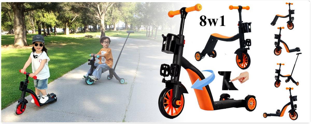 ➡️ Hulajnoga / Trójkołowiec Dziecięcy 8w1 – Pojazd, który rośnie razem z dzieckiem.