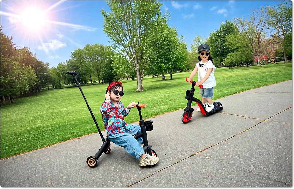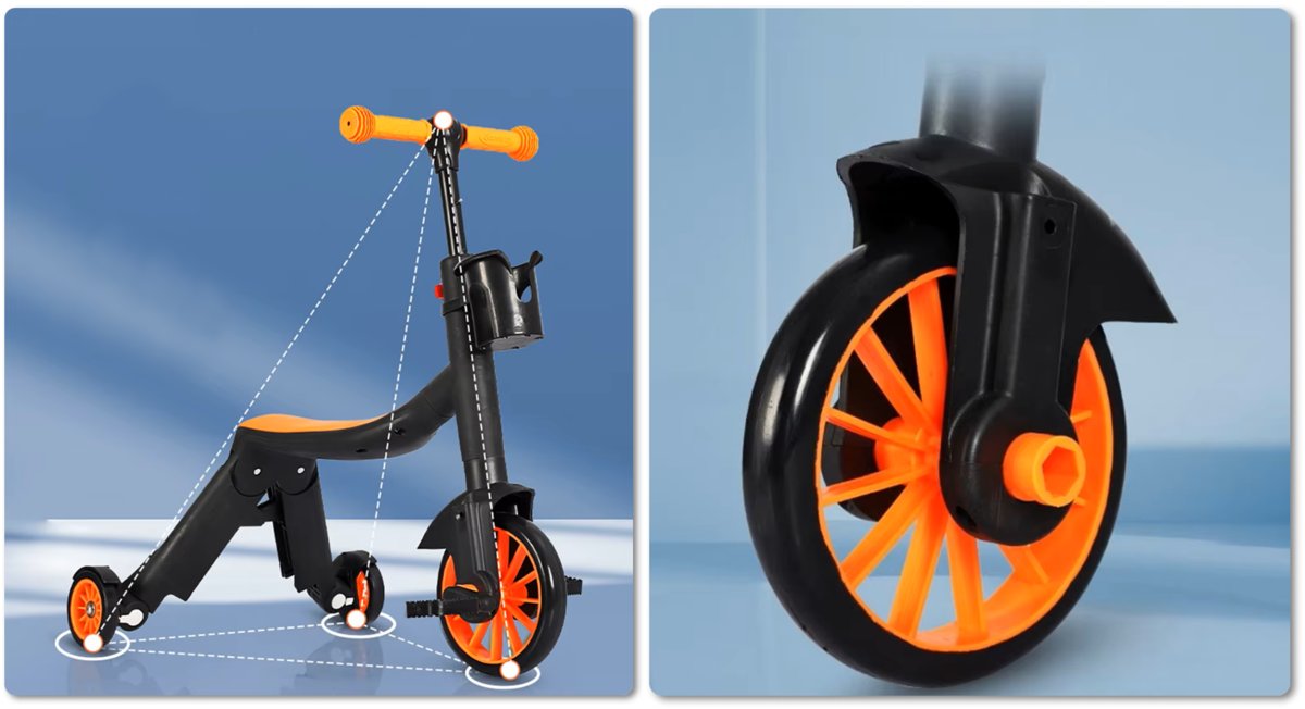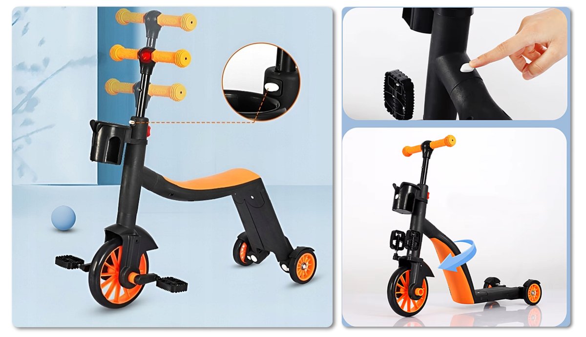 ✔️ Tricycle - Scooter – połączenie stabilnego trójkołowca z funkcjonalnością hulajnogi.