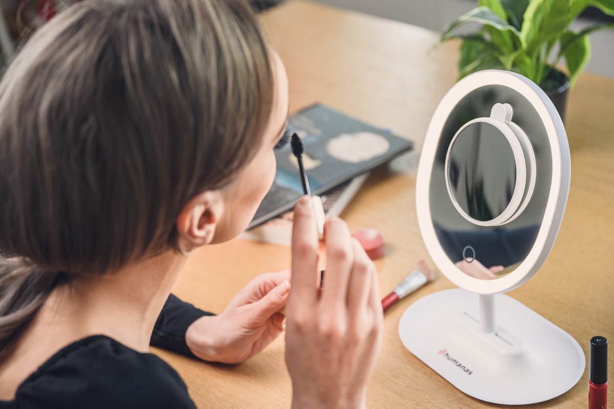 Podczas przygotowywania codziennego lub bardziej odświętnego makijażu, dobre oświetlenie to podstawa sukcesu. Z lusterkiem Humanas HS-ML03 krzywe kreski, nierównomiernie rozprowadzony puder czy niedoskonale poprowadzony kontur oczu i ust przestaną być problemem. Eleganckie lustro z wydajnym podświetleniem LED o regulowanej mocy i temperaturze barwnej pomoże Ci w uzyskaniu perfekcyjnych efektów.