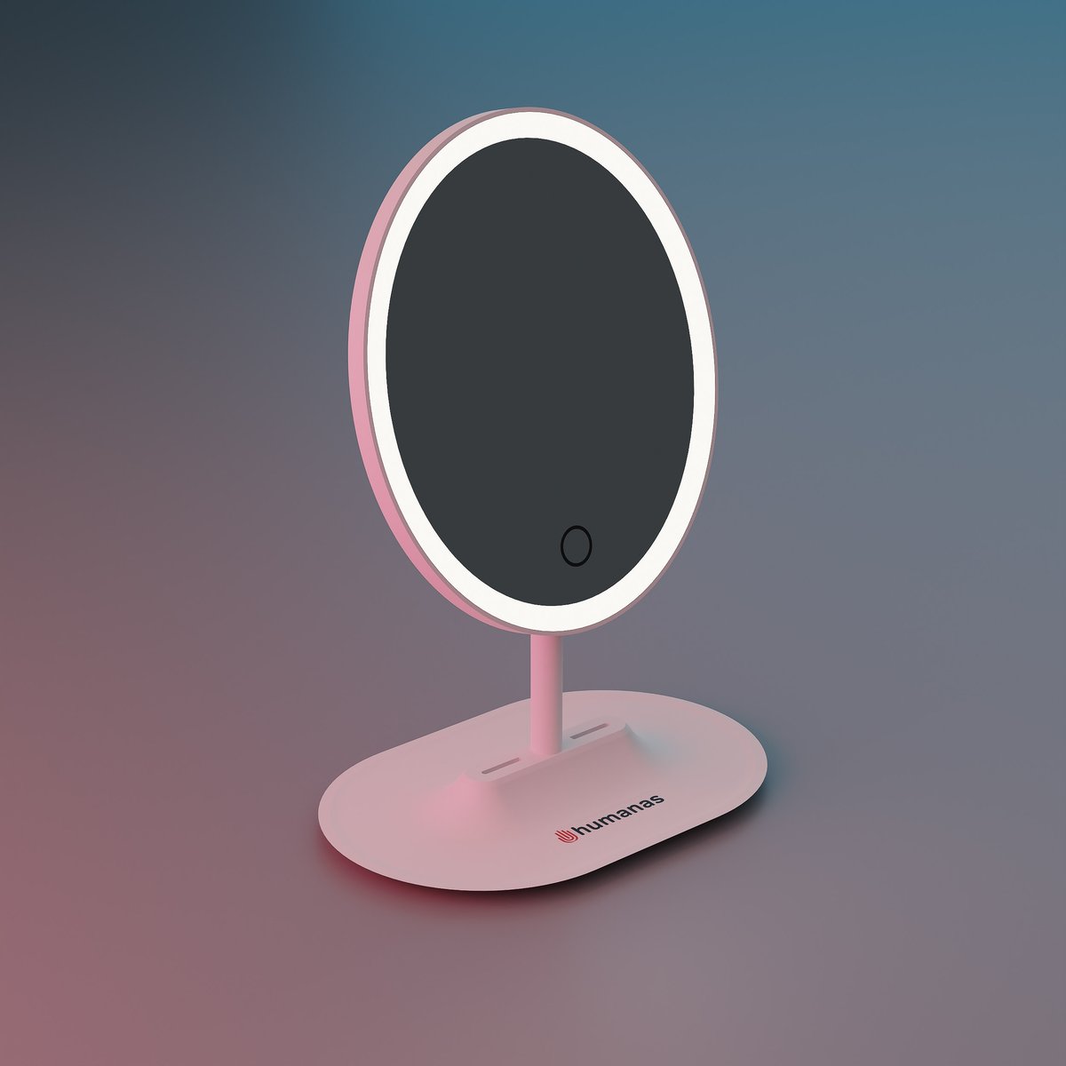 Lusterko do makijażu Humanas HS-ML03 z podświetleniem LEDrónomierne, odpowiednio mocne oświetlenie LED ukryte pod mlecznym tworzywem,możliwośc wyboru barwy światła - ciepła, zimna, naturalnaregulacja