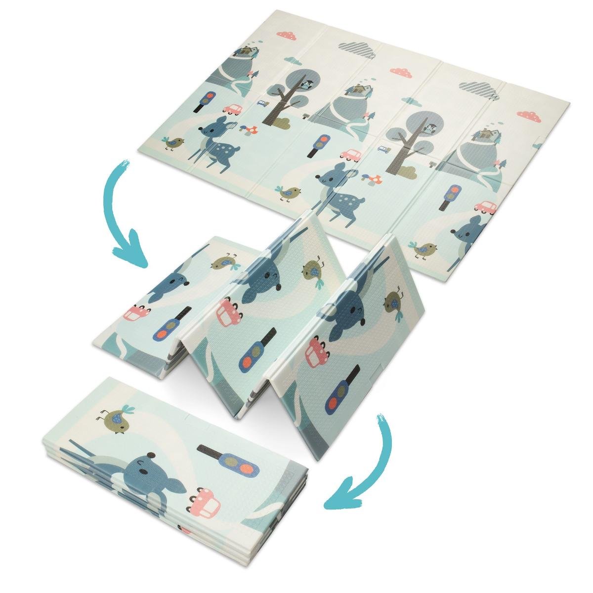 Złożona mata to także wygoda przechowywania. Mata nie zajmuje dużo miejsca więc można ją łatwo przechowywać pod łóżeczkiem lub w pozycji pionowej pomiędzy meblami.