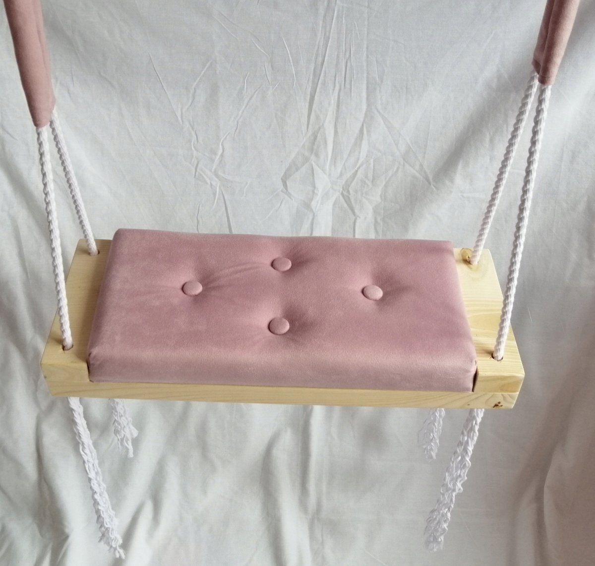 Oferujemy Państwu nową huśtawkę siedzisko na piance o grubości 3cm. Huśtawka wykonana jest z drewna oraz z mięciutkiego siedziska wykończonego materiałem pluszowym. Huśtawkę wykonujemy samodzielnie. Jest to produkt polski.