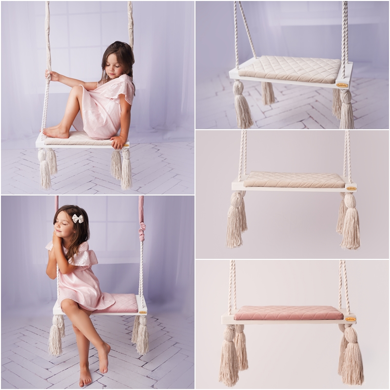Właśnie zrecenzowałem Huśtawka dla dzieci domowa duża drewniana | Velvet pikowana SZARA | 100% ECO | CE | Create For You