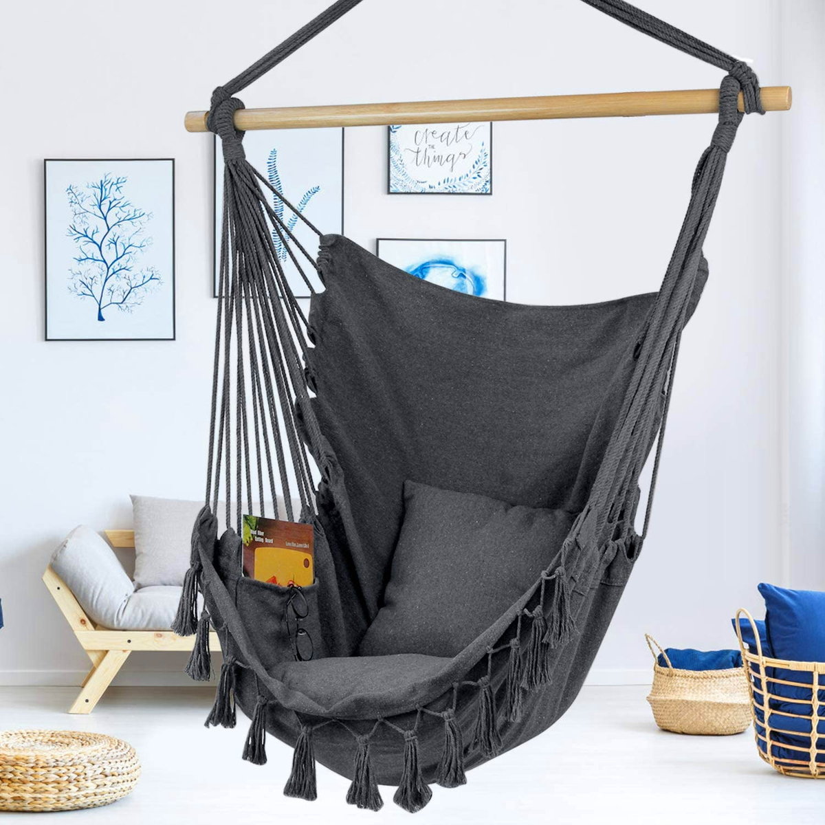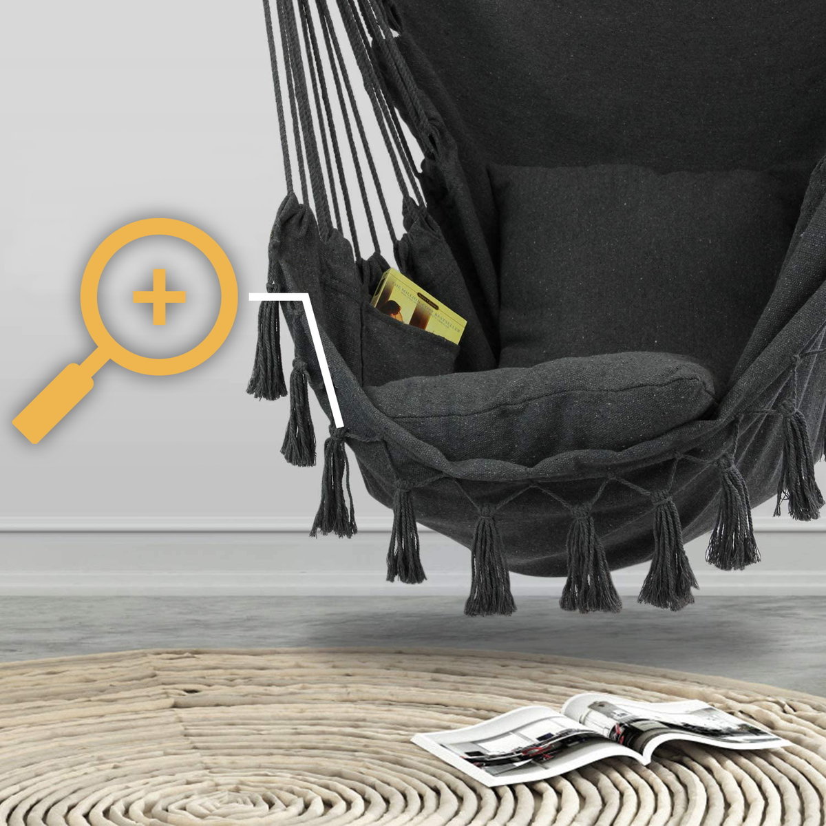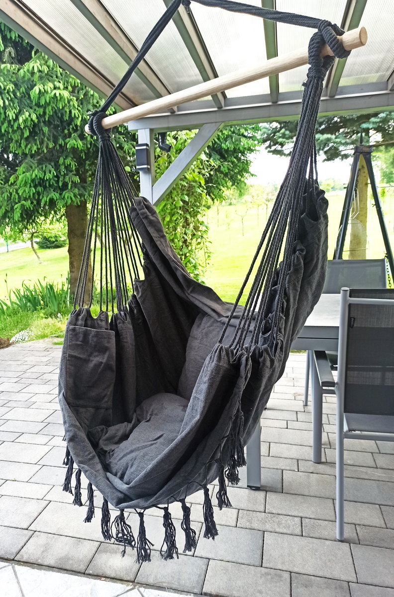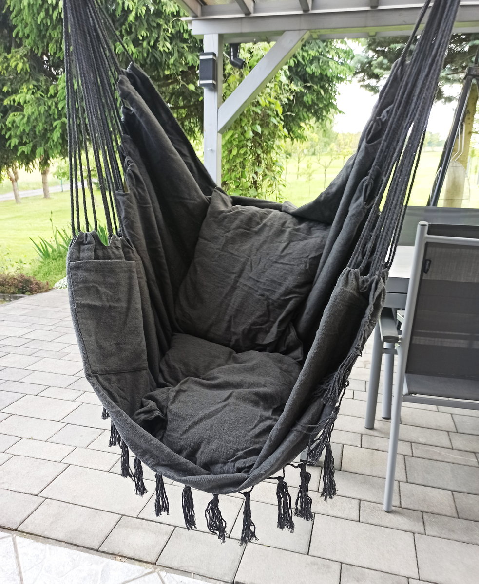 Właśnie zrecenzowałem Fotel brazylijski duży boho krzesło huśtawka fotel wiszący mocny wytrzymały z grubej bawełny 150x120cm | ActivePlus antracytowy