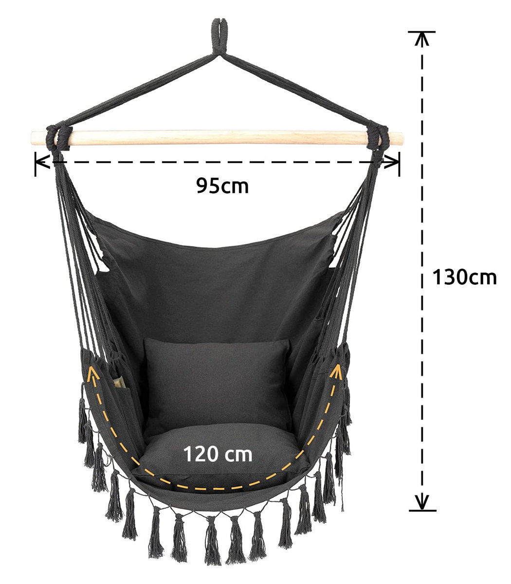 | Nazwa: | Fotel brazylijski duży boho krzesło huśtawka fotel wiszący mocny wytrzymały z grubej bawełny 150x120cm | ActivePlus antracytowy |