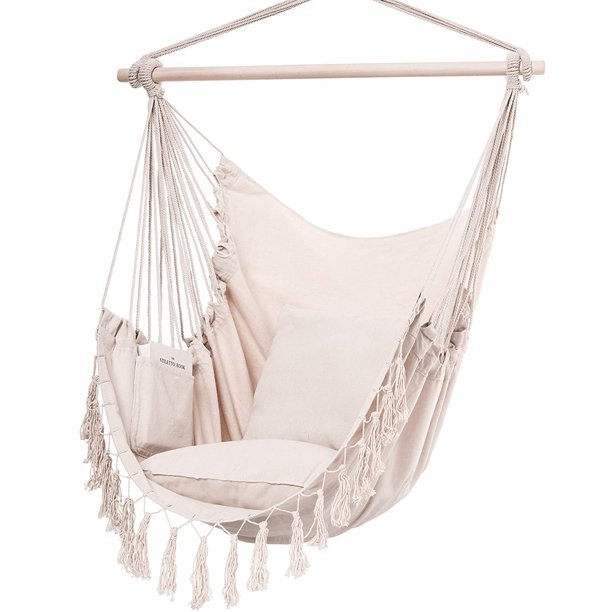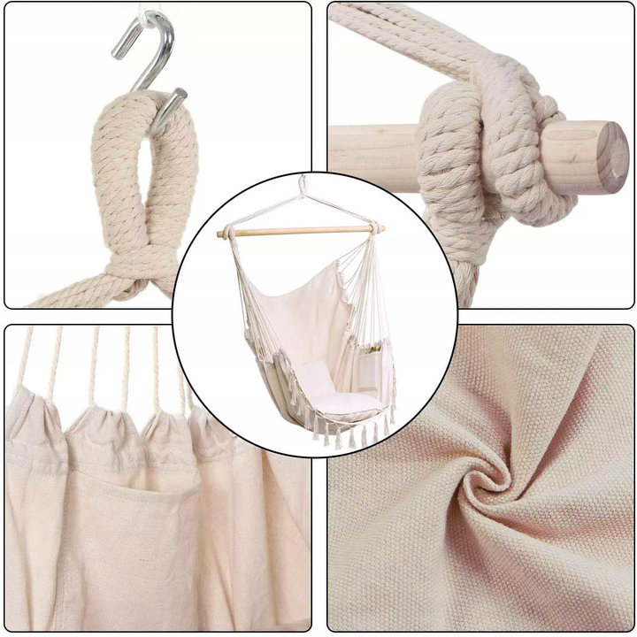 HUŚTAWKA FOTEL WISZĄCY KRZESŁO BRAZYLIJSKIE BOHO KRZESŁO BRAZYLIJSKIE HAMAK + 2 PODUSZKI Doskonały sposób na wypoczynek!