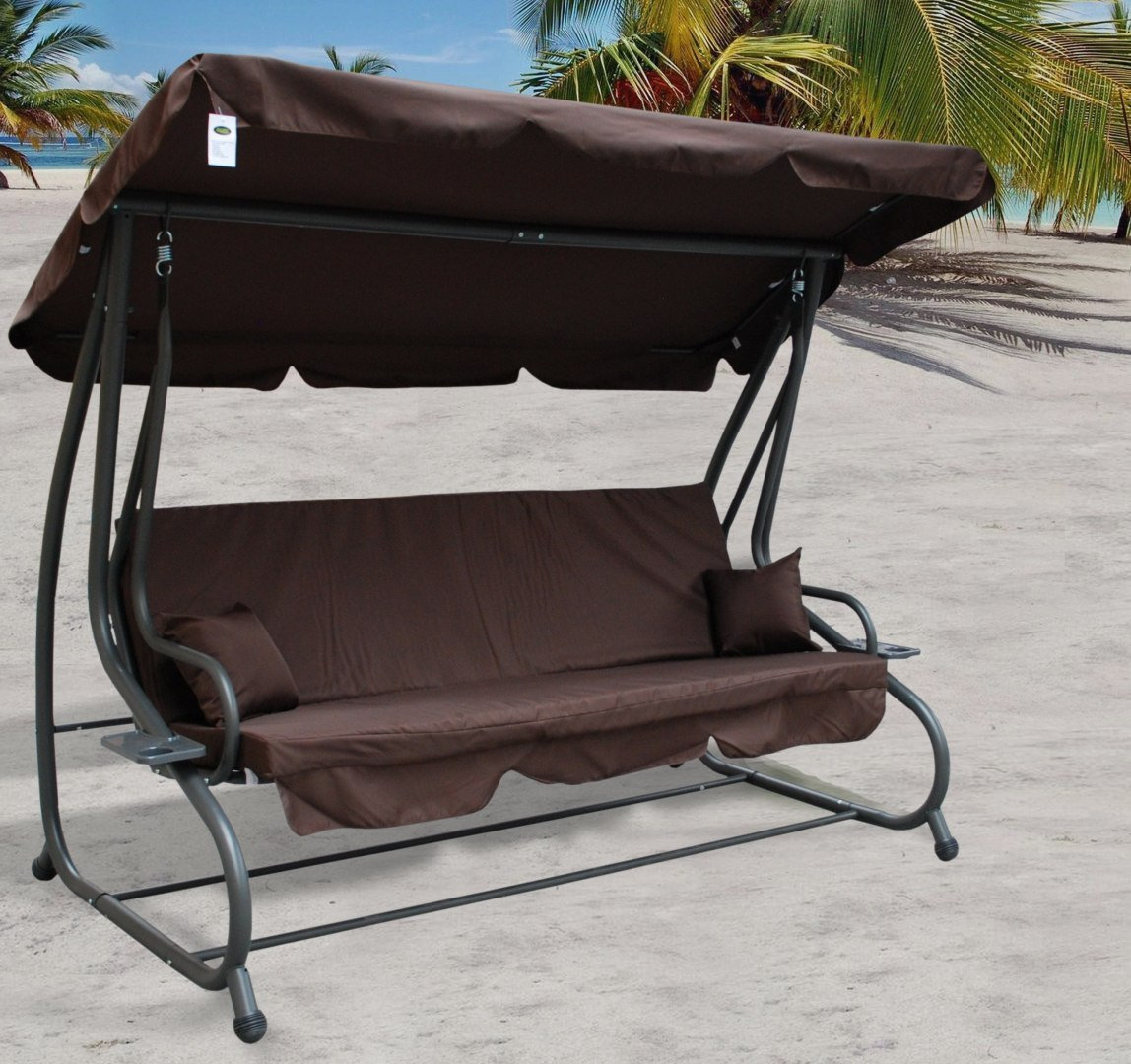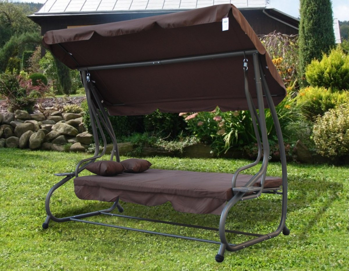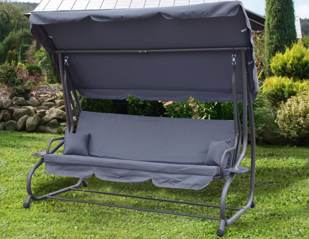 Huśtawka ogrodowa z rozkładanym siedziskiem i regulacją daszka, szara [8011 NEW SZ] |