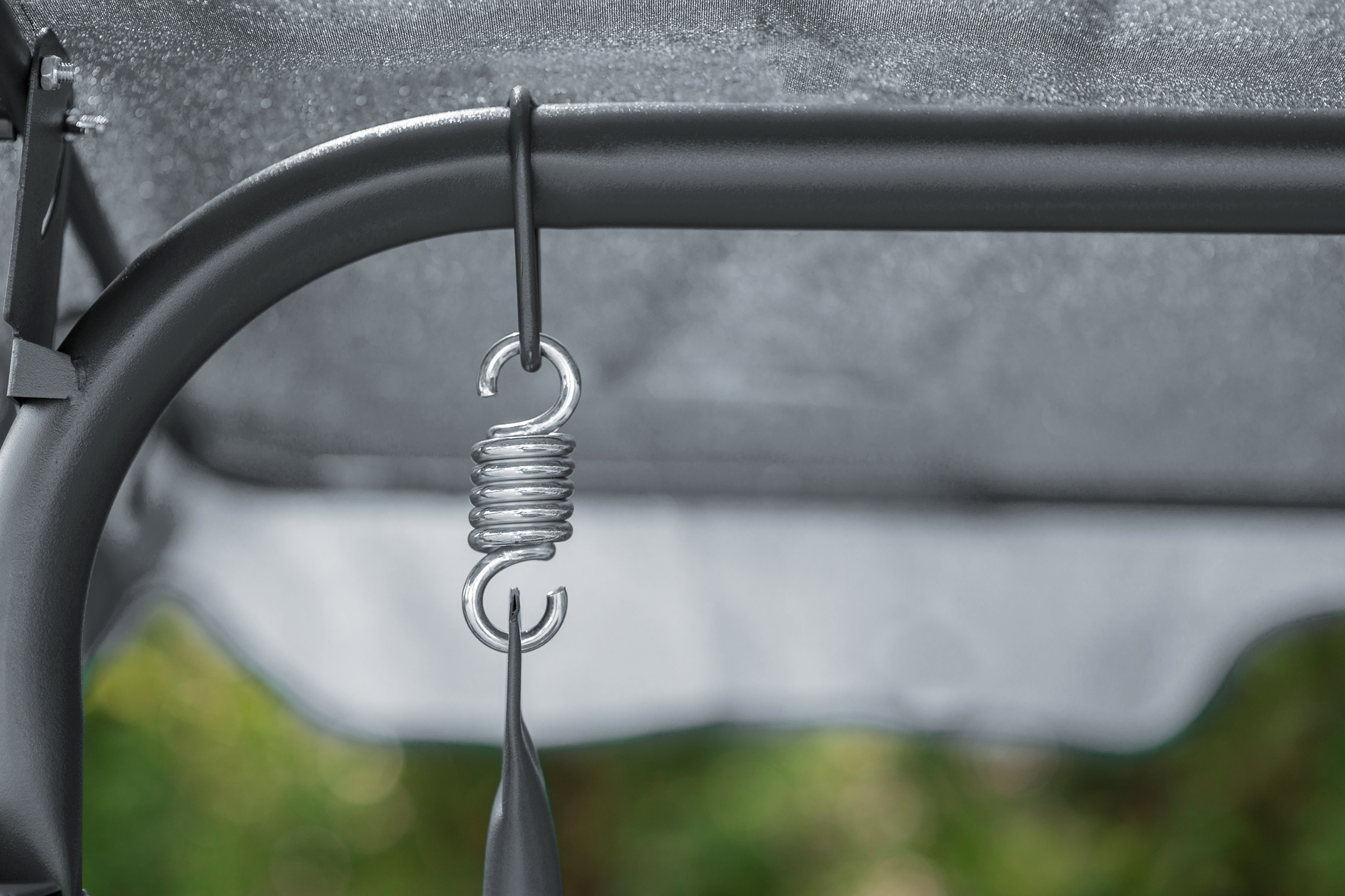 Huśtawkę cechuje wysoka jakość wykonania oraz trwała i solidna konstrukcja. Aby zwiększyć komfort wypoczynku nasz produkt wyposażony jest w regulowany daszek chroniący użytkownika przed promieniami słonecznymi.