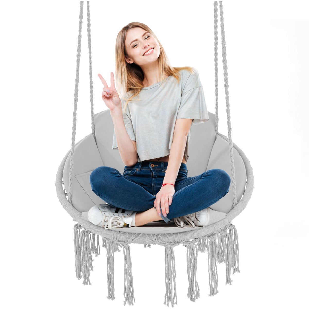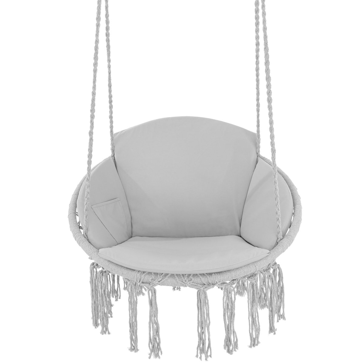 Szara Huśtawka Boho z Makramy z Wodoodporną Poduszką – Idealny Wybór do Twojego Wnętrza i OgroduWprowadź do swojego domu lub ogrodu rustykalną nutę elegancji i wyjątkowego komfortu dzięki szarej ...