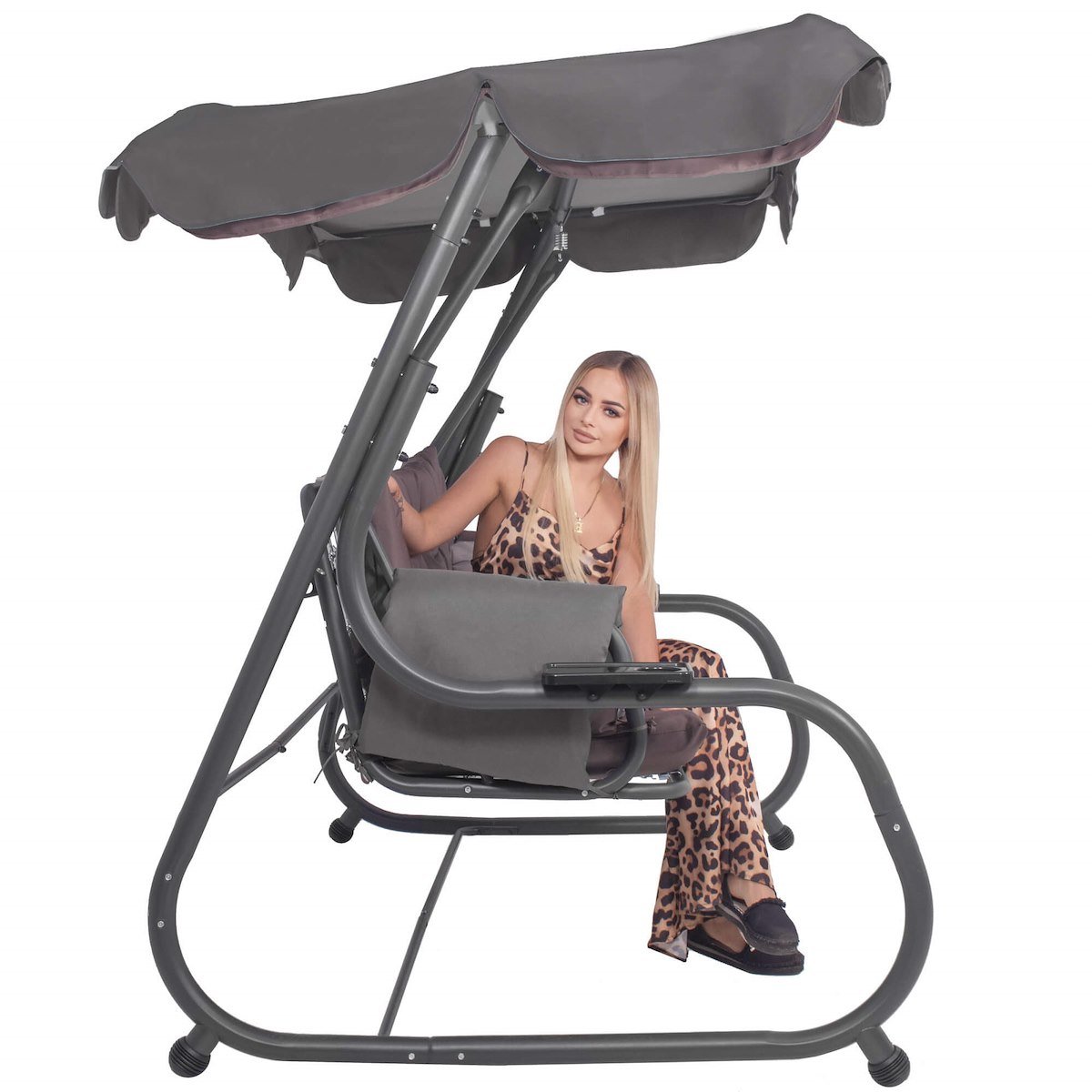 Właśnie zrecenzowałem Huśtawka ogrodowa, tarasowa z daszkiem i moskitierą, 3-osobowa z podstawkami na napoje brązowo-szara