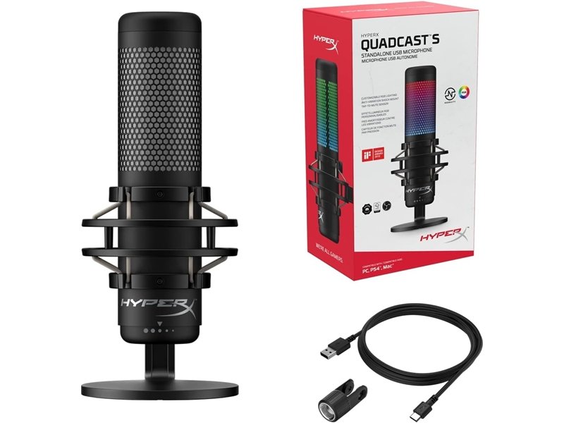 | Nazwa: | HyperX QuadCast S – mikrofon pojemnościowy USB RGB do komputerów PC, PS4 i Mac, uchwyt antywibracyjny, filtr pop, gry, przesyłanie strumieniowe, podcasty, Twitch, YouTube, Discord, czarny |