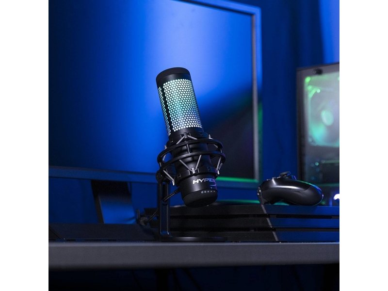 HyperX QuadCast S — mikrofon pojemnościowy USB RGB do komputerów PC, PS4 i Mac, uchwyt antywibracyjny, filtr pop, gry, przesyłanie strumieniowe, podcasty, Twitch, YouTube, Discord, kolor czarny HyperX QuadCast S to mikrofon pojemnościowy USB, który w obu przypadkach brzmi świetnie i wygląda świetnie. Niezwykle oszałamiające oświetlenie RGB i efekty dynamiczne dodadzą stylu i charakteru każdemu strumieniowi lub konfiguracji, a można je dostosować za pomocą oprogramowania HyperX NGENUITY. QuadCast S to wszechstronny mikrofon wyposażony w uchwyt antywibracyjny, który pomaga wyciszyć odgłosy codziennego życia, oraz wbudowany filtr pop, który tłumi dźwięki wybuchowe. Natychmiast sprawdzaj stan swojego mikrofonu dzięki wskaźnikowi LED i po prostu dotknij, aby wyciszyć, aby uniknąć niezręcznych wypadków podczas transmisji. Dzięki czterem wzorom kierunkowości do wyboru mikrofon ten jest przygotowany na niemal każdą sytuację nagrywania, a także posiada pokrętło regulacji wzmocnienia do szybkiej regulacji czułości wejściowej. Dołączony adapter mocowania pasuje do gwintów 3/8” i 5/8” i jest kompatybilny z większością stojaków. QuadCast S posiada certyfikaty Discord i TeamSpeak, dzięki czemu możesz mieć pewność, że Twój mikrofon transmituje głośno i wyraźnie dla wszystkich obserwujących i słuchaczy, a także możesz monitorować swój mikrofon w czasie rzeczywistym za pomocą wygodnego gniazda słuchawkowego z tyłu mikrofonu. Jest kompatybilny z wieloma platformami, dzięki czemu możesz zapewnić wysokiej jakości dźwięk niezależnie od tego, czy łączysz się z komputerem PC, PS4 czy Mac. Promienne oświetlenie RGB z efektami dynamicznymi Antywibracyjny uchwyt antywibracyjny, adapter mocowania, wbudowany filtr pop i gniazdo słuchawkowe Czujnik typu „dotknij, aby wyciszyć” ze wskaźnikiem LED, cztery charakterystyki kierunkowe do wyboru Wygodna regulacja wzmocnienia, konfigurowalna za pomocą oprogramowania HyperX NGENUITY kompatybilność urządzenia i programu