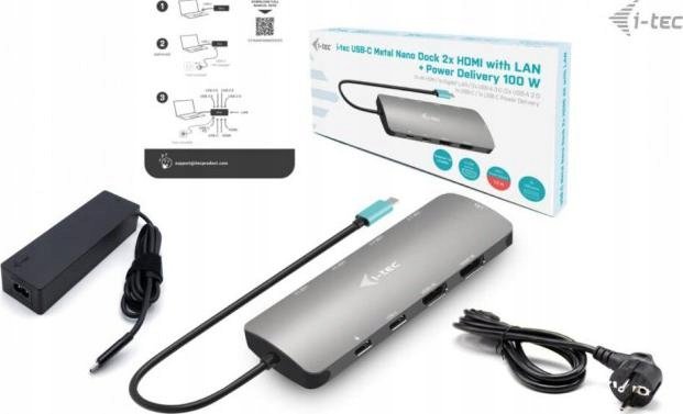 i-tec USB-C Metal Nano Docking Station 2x HDMI LAN Power Delivery 100W + Ch i-tecProducent: i-teczgodność: uniwersalnyKolor: szary, szara, asfaltowa szarość, szare, szary melanż, stalowy, ...