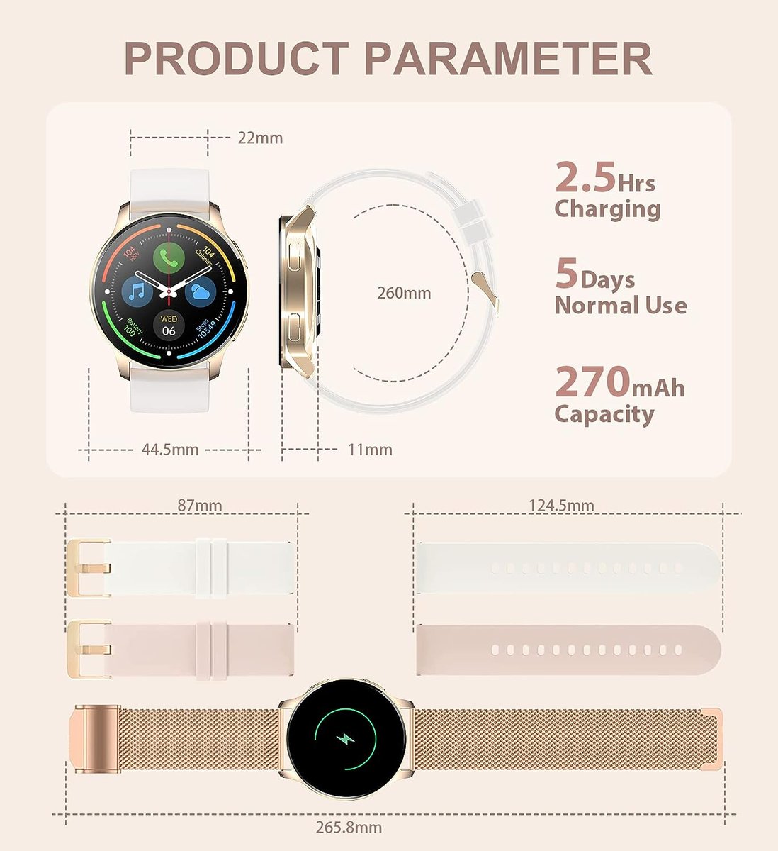 Iaret Damski smartwatch, Bluetooth Calls, 1,32" HD iOS Android Smart Watch z asystentem głosowym Powiadomienia o wiadomościach, 20 trybów sportowych krokomierz pulsometr SpO2 sen