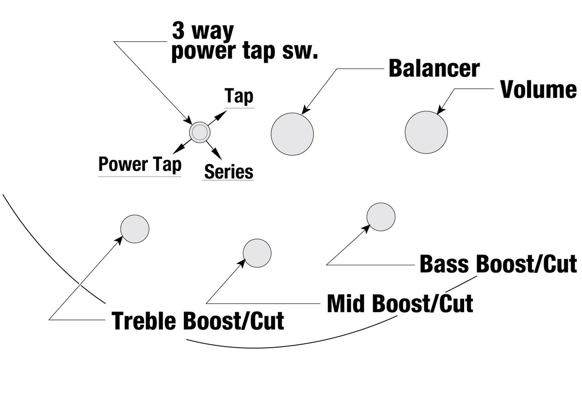 - Elektronika: Ibanez Custom Electronics 3-band eq w/3 way Power Tap switch