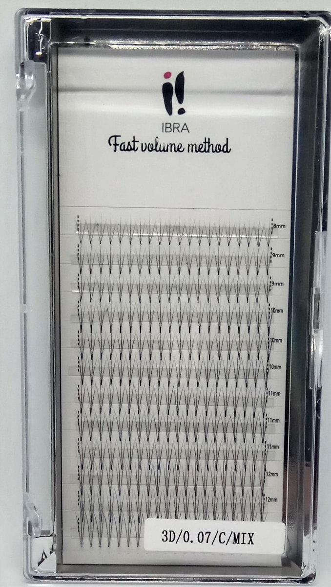 Ibra Rzęsy Fast Volume Method 3D C 0, 07 Mix Najwyższej jakości rzęsy do metody objętościowej 3D marki IBRA. Wachlarzyki charakteryzują się naturalnym odcieniem czerni, najwyższej jakości włóknem