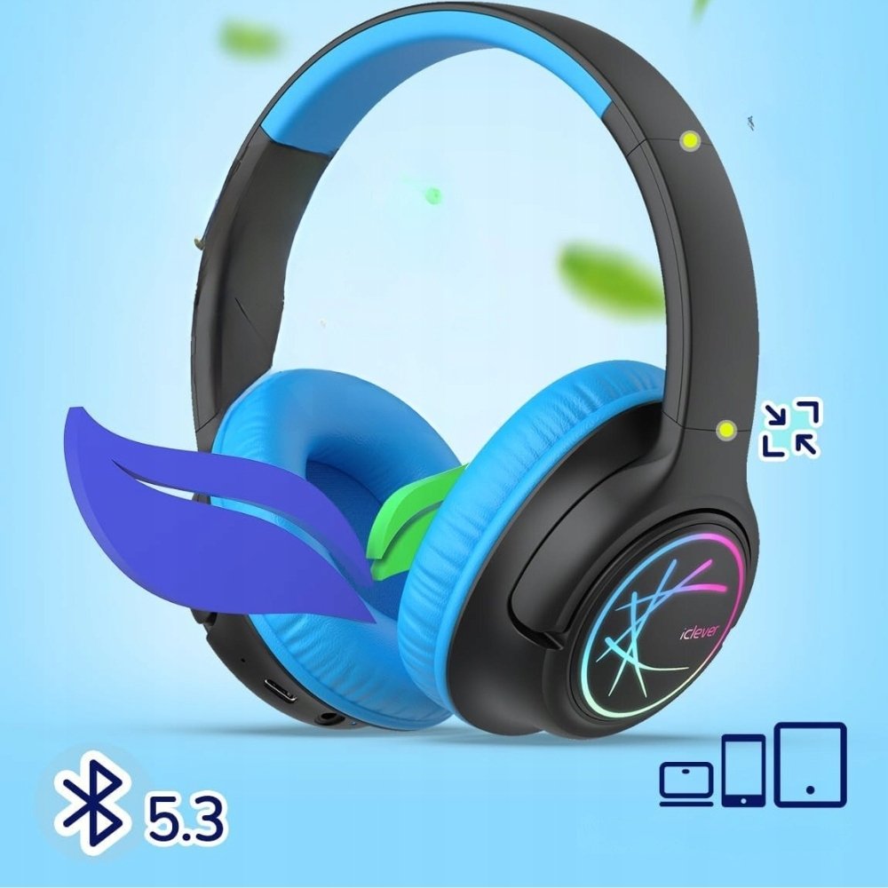 ✨ iClever BTH18 – Dziecięce Bezprzewodowe Słuchawki Bluetooth LED ✨