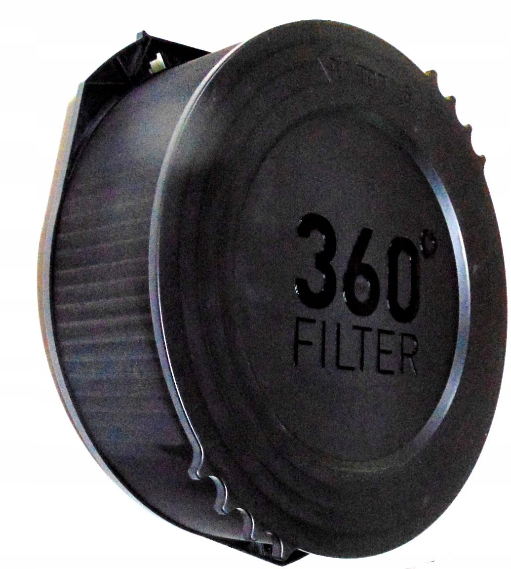 Nowatorski system filtrów wielowarstwowych 360° składa się z drobnego filtra wstępnego, filtra HEPA klasy H14 i bardzo wysokiej zawartości węgla aktywnego. Dzięki inteligentnemu czujnikowi identyfikacji radiowej (RFID) urządzenie jest w stanie automatycznie rozpoznać zastosowany filtr i dopasować do niego specjalne funkcje urządzenia.